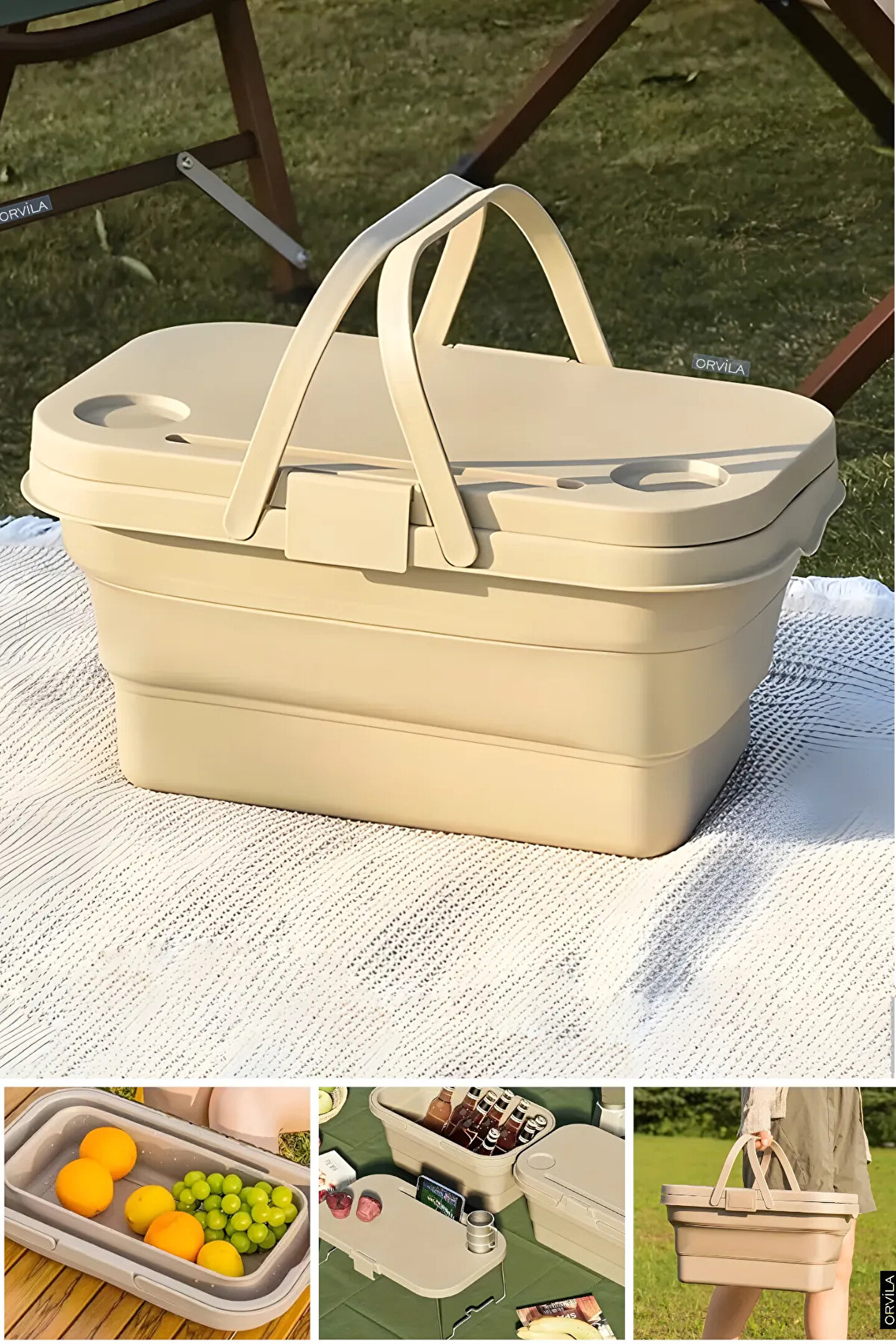 Piknik ve kamp keyfinizi bir üst seviyeye taşıyacak olan katlanır masalı piknik sepetimizle tanışın! 35 litrelik geniş hacmi sayesinde tüm ihtiyaçlarınızı rahatlıkla yanınıza alabilir, doğanın tadını çıkarırken konforunuzu da koruyabilirsiniz.