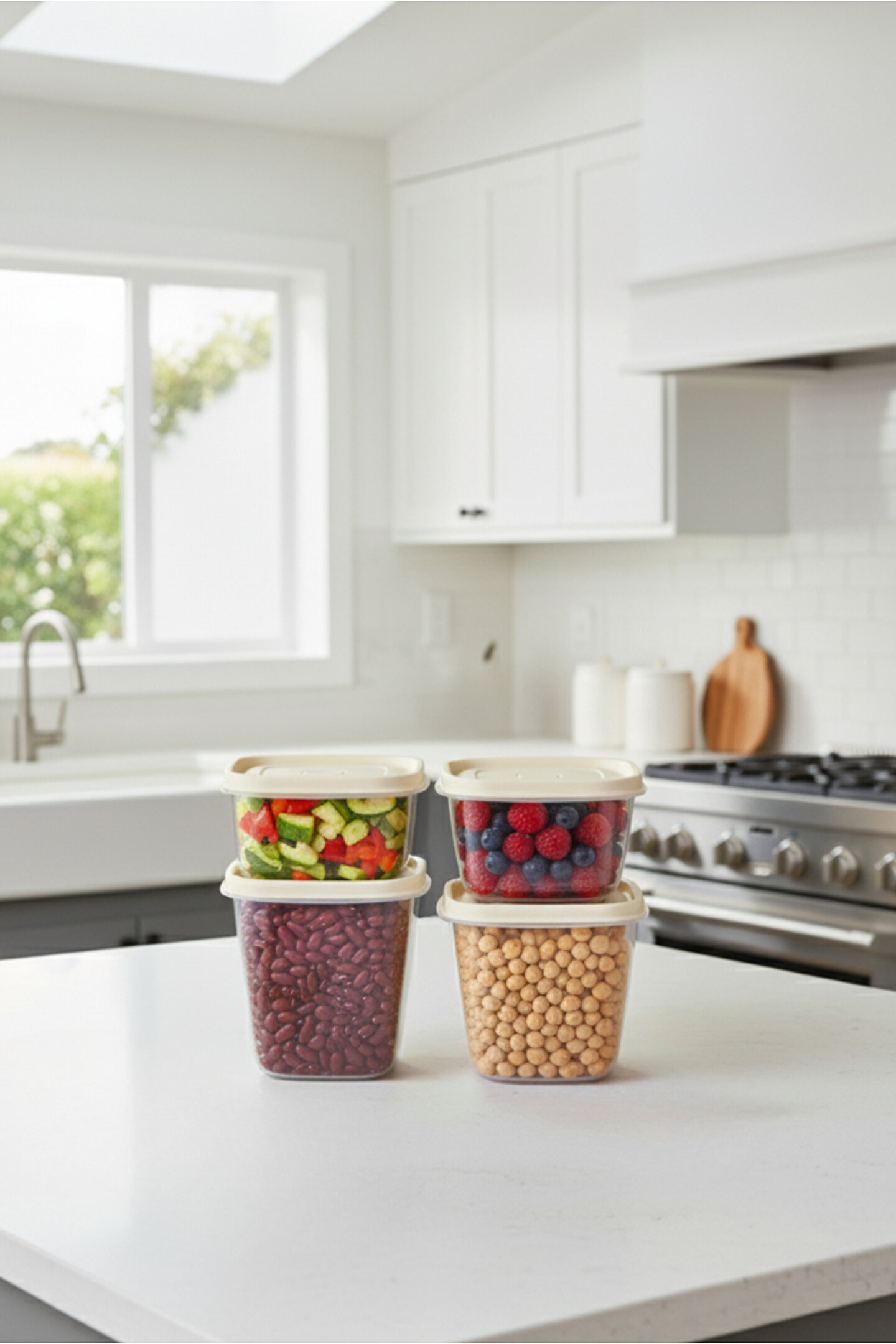Orvila Krem 4lü Vakumlu Sızdırmaz Kapaklı Saklama Kabı Erzak Düzenleyici Set 1L, 1,5L, 2L, 2,5L