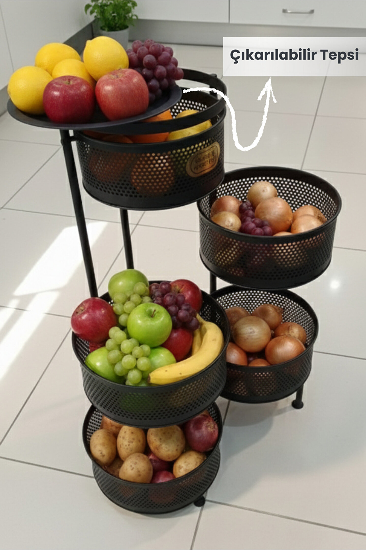 Ölçüler: Sepetler : 30x30 Cm; Sepet Yüksekliği : 13 cm ; Toplam Yükseklik : Yükseklik : 87 cm; Mutfak tezgâhında ya da evinizin başka alanlarında ekstra depolama alanına ihtiyaç duyanlar.; Sebze ve meyvelerini düzenli şekilde saklamak isteyenler.; Evleri küçük olan, alanı verimli kullanmak isteyenler.; Kolayca hareket ettirip gerektiğinde sabitlemek isteyen kullanıcılar.;