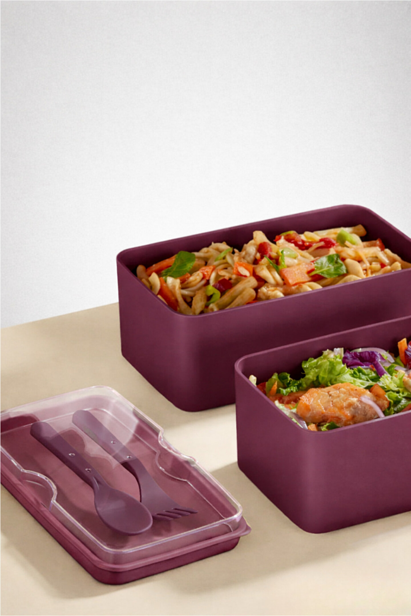 - Geniş iç hacmiyle 2 litre kapasiteye sahip, yemeklerinizi uzun süre taze tutmanızı sağlayan plastik yemek saklama kabı; - İki katlı tasarımı sayesinde hem ana yemekleri hem de yan yemekleri ayrı ayrı saklama imkanı sunar; - Pratik kullanım için kendinden çatal ve kaşık içeren set, yemeklerinizi servis ederken ekstra aksesuar ihtiyacını ortadan kaldırır; - Dayanıklı plastik materyali ile hafif ve kolay taşınabilir, mutfakta veya pikniklerde rahatlıkla kullanılabilir;