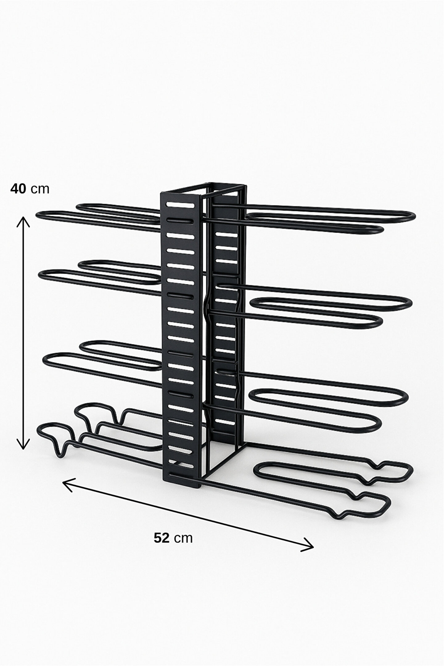Dayanıklı metal gövdesiyle uzun ömürlü kullanım sunan bu tencere ve tava düzenleyici, mutfakta düzeni ve şıklığı bir araya getirir; hem tezgah üstünde hem dolap içinde kullanıma uygundur.; Kaymaz tabanı sayesinde sabit durur, paslanmaz yapısı ile güvenli ve hijyenik bir kullanım sağlar.; Ölçüsü 40x52 cm dir; Ayarlanarak kolay ve farklı kullanım sağlar.; Tava, tencere, kapak ve kesme tahtası gibi mutfak gereçlerini düzenli bir şekilde saklamanıza yardımcı olur; yer kazandırır ve dağınıklığı ortadan kaldırır.; Modern tasarımıyla mutfağınıza estetik bir görünüm katar, kolay kurulumu sayesinde pratik bir çözüm sunar.; Kullanım Alanları Mutfak dolabı içi düzenleme Tezgah üstü saklama alanı Restoran, kafe veya ev tipi mutfaklar için modern düzenleyici.