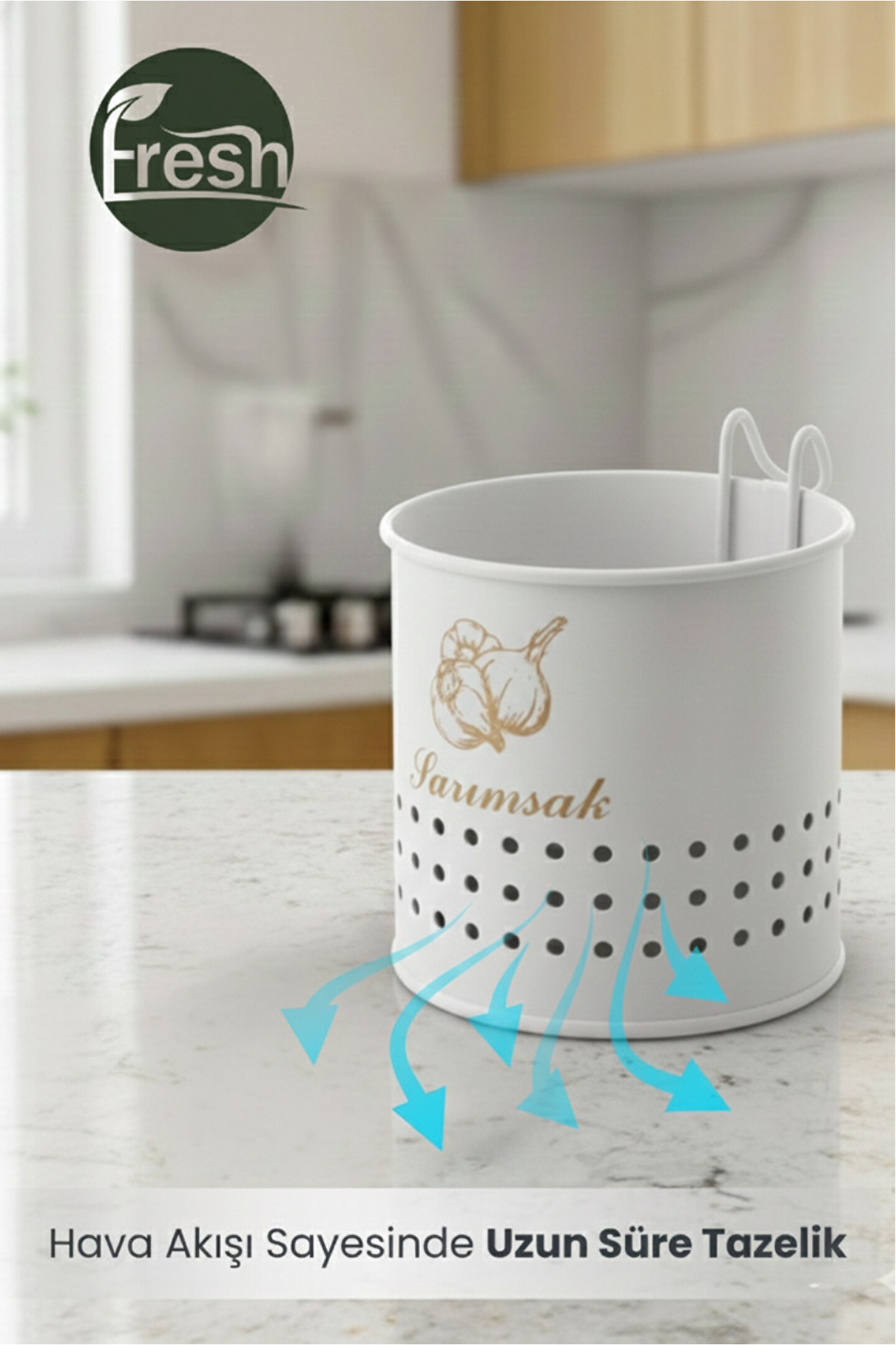 Metal sarımsaklık; kaliteli ve dayanıklı çelik gövde; paslanmaz yapısı sayesinde uzun ömürlü kullanım; sarımsakları nemden, ışıktan ve küflenmeden korur; alt kısımdaki hava delikleri sayesinde ideal hava akışı sağlar; sarımsakların daha uzun süre taze kalmasına yardımcı olur; modern mat siyah tasarım; mutfak tezgâhında dekoratif duruş; hijyenik kapaklı yapı; sarımsak kokusunu dışarı yaymadan muhafaza eder; geniş iç hacmiyle bol miktarda sarımsak depolar; kolayca silinip temizlenebilir; mutfak düzenini artıran pratik saklama çözümü; sağlıklı saklama koşulları oluşturur; robust metal yapısı darbelere karşı dayanıklıdır; ergonomik tutma bölümü sayesinde rahat kullanım; mutfak organizasyon ürünleri arasında popüler tercihlerden biridir; modern, şık ve fonksiyonel tasarımıyla her mutfağa uyum sağlar; uzun süreli tazelik ve düzen için ideal bir saklama kabı.; Ölçü 13x13 cm dir.