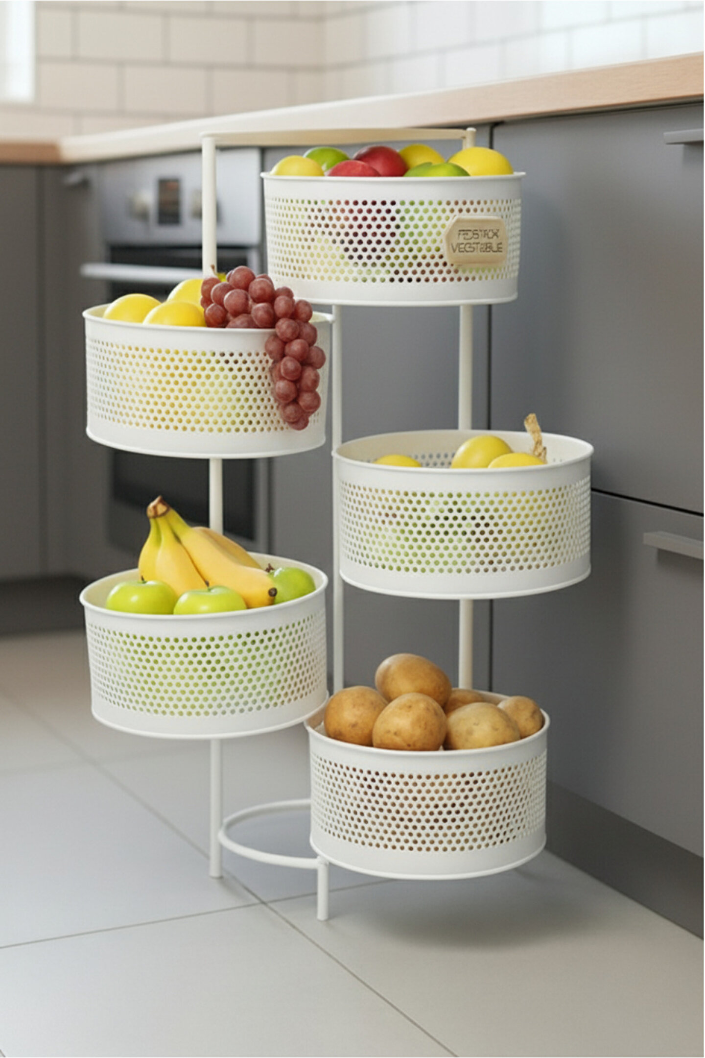 Orvila Metal Sebzelik 5 Katlı Tepsili Açılır Metal Patates Soğan Meyvelik Sepeti Rafı Beyaz