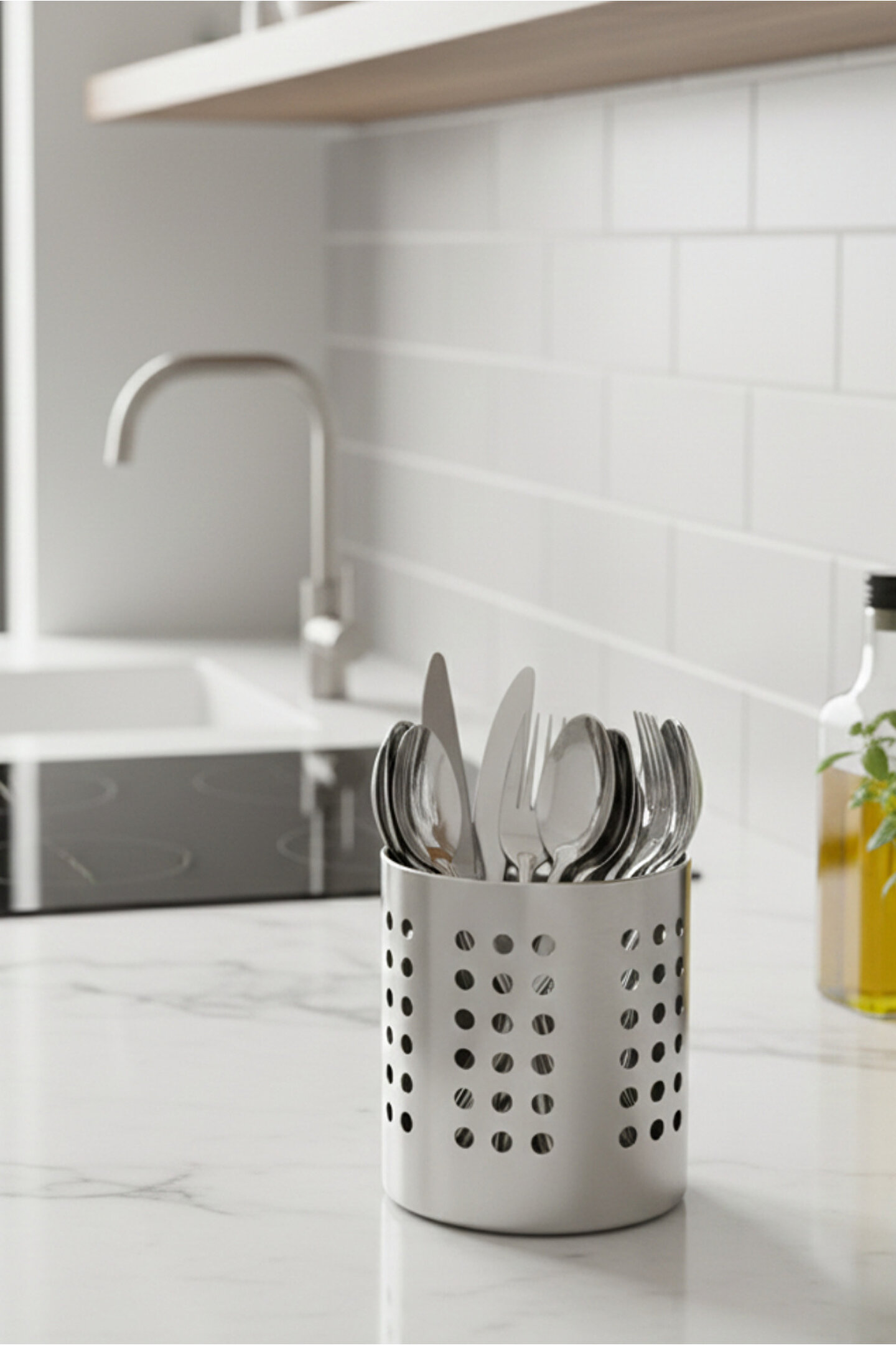 Metal kaşıklık; mutfakta kaşık, çatal, bıçak ve pişirme gereçlerini düzenli şekilde saklamanızı sağlar; dayanıklı metal gövdesi sayesinde uzun ömürlü kullanım sunar; paslanmaya karşı dirençli yapısı ile günlük kullanıma uygundur; modern ve sade tasarımı sayesinde her mutfak dekorasyonuna uyum sağlar; delikli gövde yapısı ile su ve nem birikmesini önler, hijyenik kullanım sağlar; tezgah üstünde az yer kaplayan kompakt tasarıma sahiptir; kaşık, spatula, çırpıcı ve benzeri mutfak gereçleri için geniş iç hacim sunar; temizliği kolaydır, nemli bezle silinerek rahatça temizlenebilir; ev, ofis ve profesyonel mutfak kullanımı için idealdir; şık metal görünümü sayesinde mutfağınıza modern bir dokunuş katar; düzenli ve pratik mutfak organizasyonu isteyenler için ideal bir çözümdür.