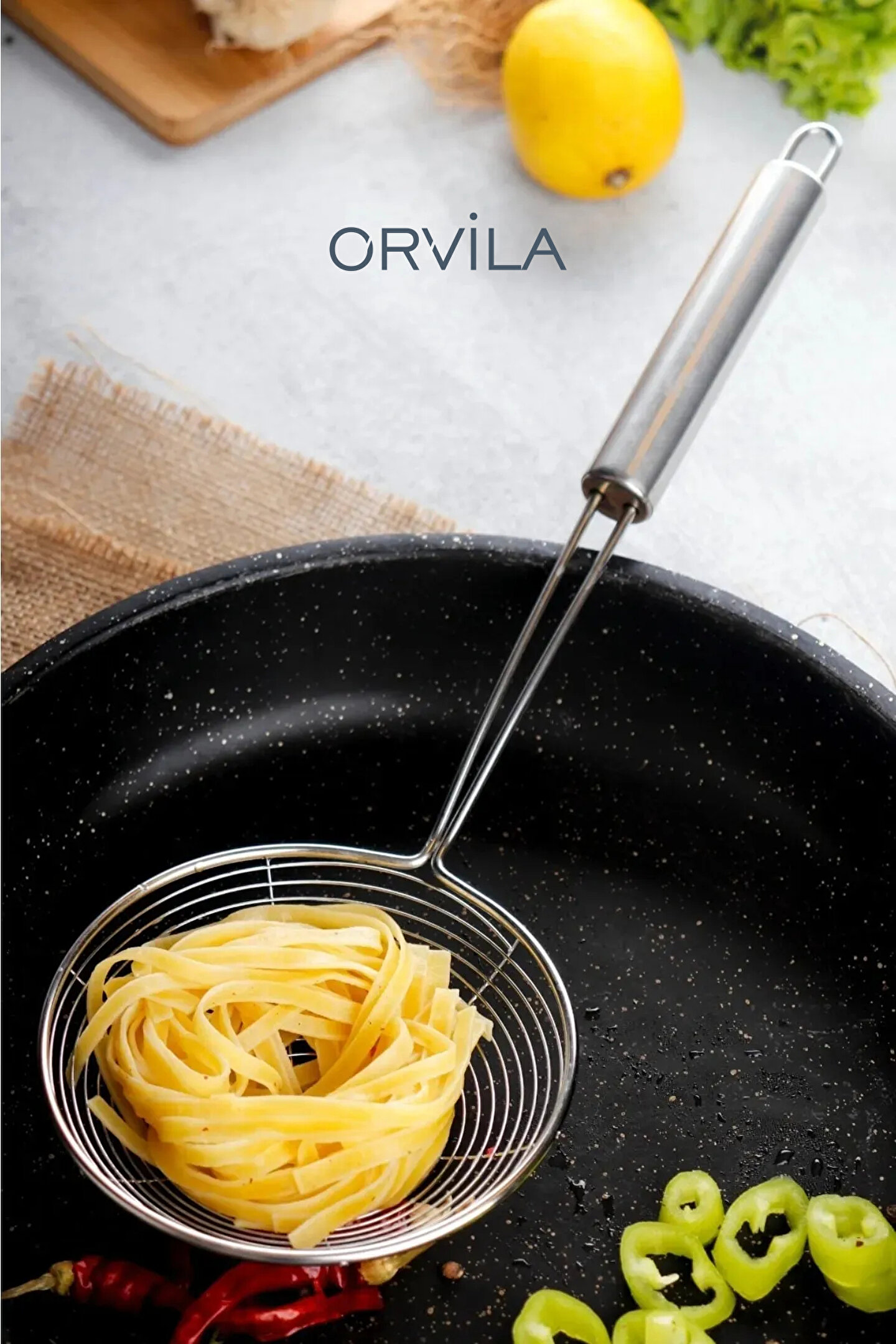 Uzunluk 32 cm ; Süzgeç çapı 12,5 cm ; Süzgeç Derinlik 4 cm ; Kulp En 2,5cm ; Çelik Tel Kevgir Patates Kabak Sebze Kızartma Kevgiri Kızartma yaparken, sebzelerin şok haşlanmasında, mantı servisinde ve mutfağınızda akla gelecek daha pek çok iş için gerekli.; ; Uzun sapı ve geniş tel sepetiyle çok kullanışlı.; ; Sepetin özel yapısı sayesinde tencerenin en altına kadar ulaşır.; ; Paslanmaz çelikten yapıldığından sağlıklı ve dayanıklıdır.; ; Bir kere alıp uzun yıllar kullanmak isteyenler için.; ; Ürün Özellikleri: Paslanmaz çeliktir.; ; Ergonomik tasarımıyla kullanımı çok kolaydır.; ; Bulaşık makinesinde yıkanabilir.; ;