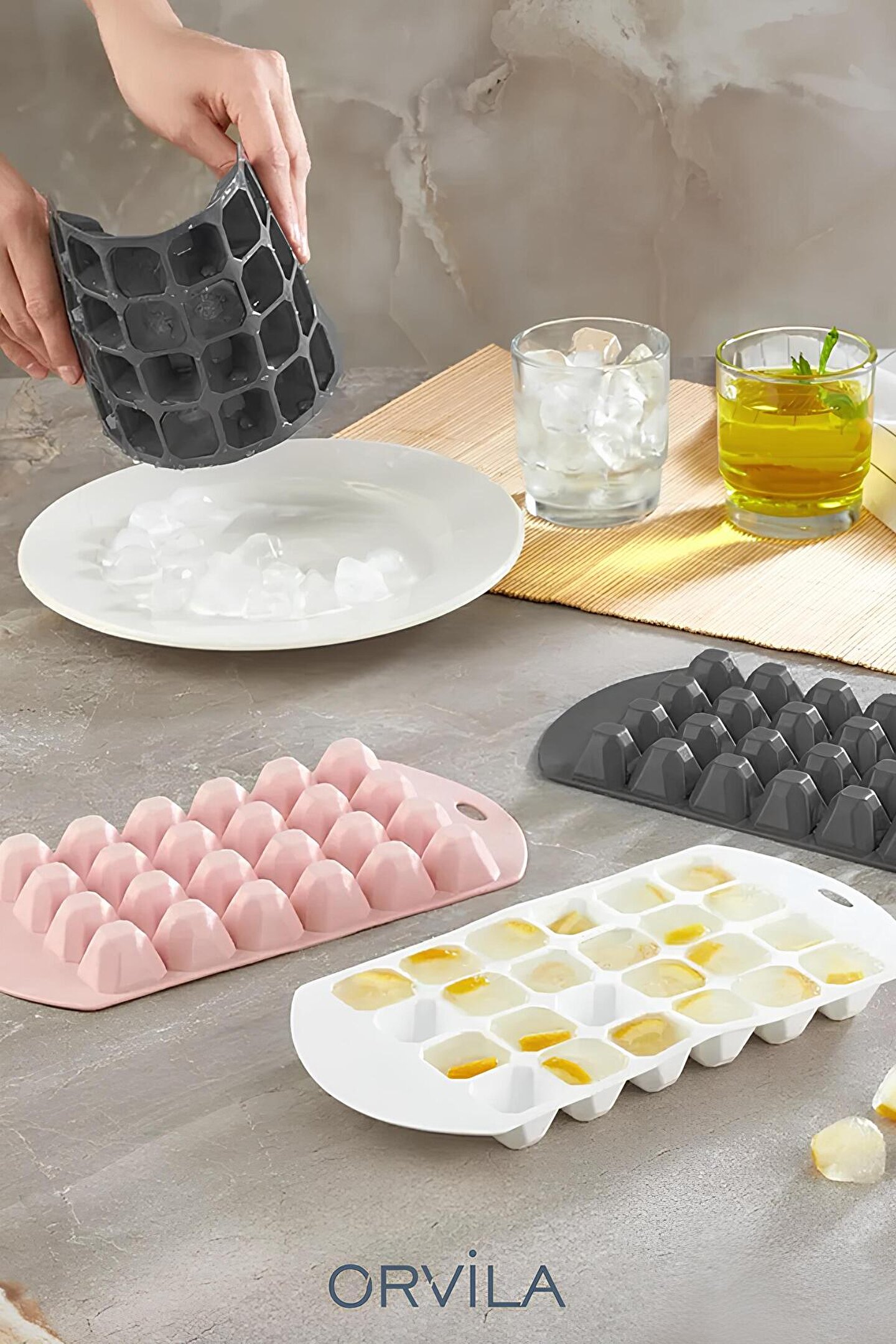 Yüksek kaliteli silikon malzemeden üretilmiş olup, dayanıklılığı ve esnekliği ile öne çıkar; 24 adet göz tasarımı sayesinde birden fazla buz küpü yapma imkanı sunar, böylece misafirlerinize aynı anda çeşitli içecekler sunabilirsiniz; Piramit şekliyle farklı ve estetik bir görünüm sağlar, buz küpleri servis ederken sofralarınıza şıklık katar; Kolay temizlenebilir yapısı sayesinde hijyenik kullanım sunar ve uzun süreli kullanım için idealdir; Esnek silikon malzemesi ile kolayca şekillendirilebilir ve buz küplerinin eşit boyutlarda olmasını sağlar;