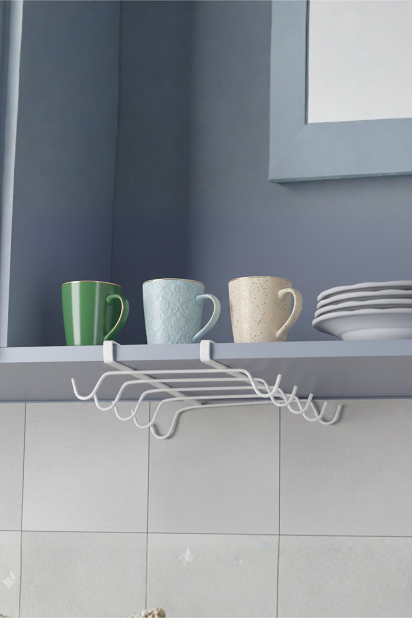 Orvila Raf Altı Asılabilir 10 Kancalı Fincan Ve Kupa Bardak Düzenleyici Askılığı - Beyaz