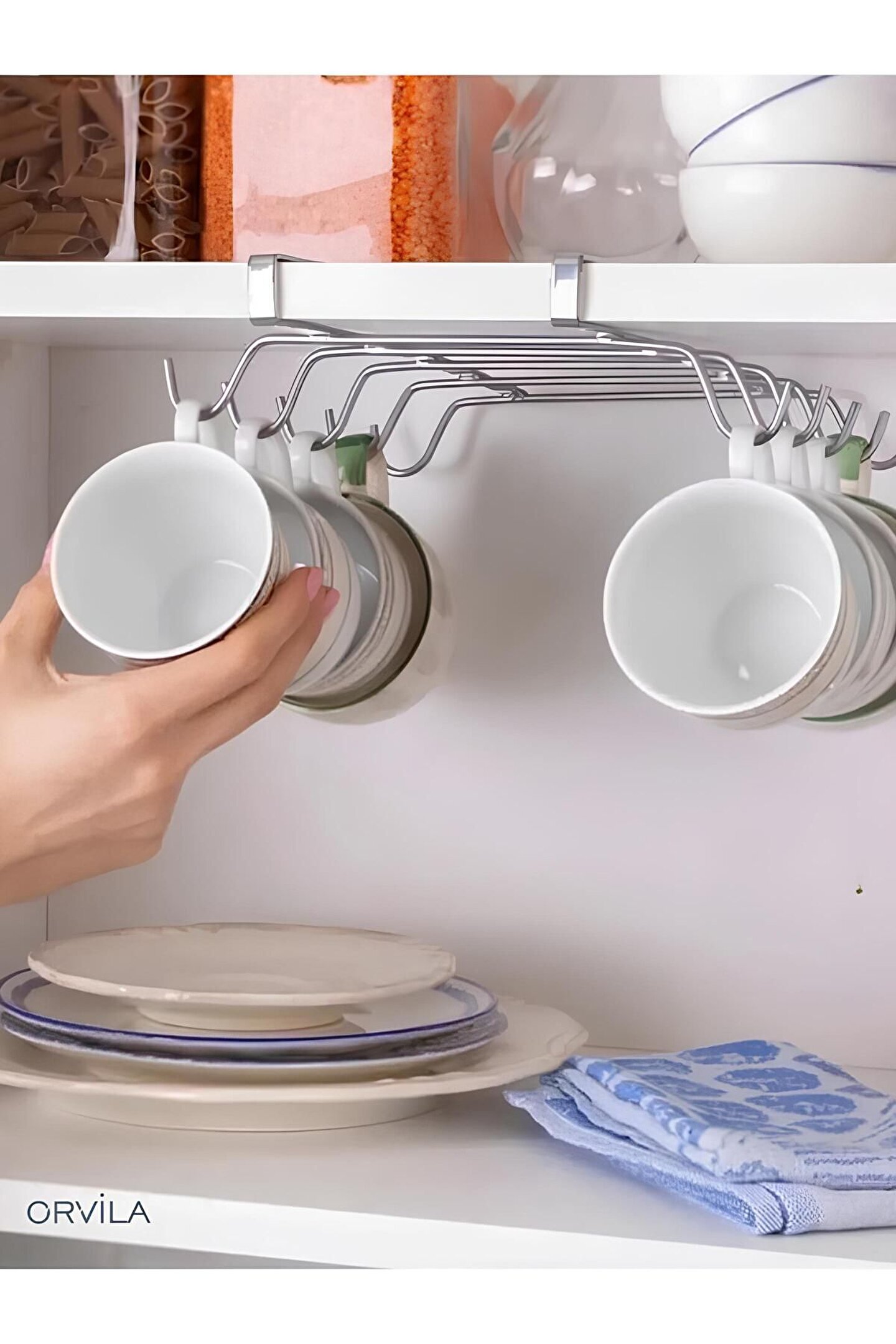 Raf Altı 10 Kancalı Fincan ve Kupa Askılığı; Mutfak rafınıza asabileceğiniz, size yer kazandıran dekoratif bir ürün Fincan ve Kupa Askılığı; Tüm mutfak dolaplarına uygundur.; Mutfak dolabınızda size yer açar, fincan ve kupaların dolaplarda yer kaplamasına gerek kalmayacak.; Mutfak dolap rafına geçmeli şekilde pratik kullanım.; Dilediğiniz zaman kolayca yerini değiştirebilirsiniz.; Başka rafa asabilirsiniz.; Sıra sıra fincan ve kupalarınızı dizerek yerden tasarruf etmenizi sağlar.; Ürün Ölçüsü;; Genişlik: 28 cm; Yükseklik: 5,5 cm; Paket İçeriği: 1 Adet 10 Kancalı Fincan ve Kupa Askılığı;
