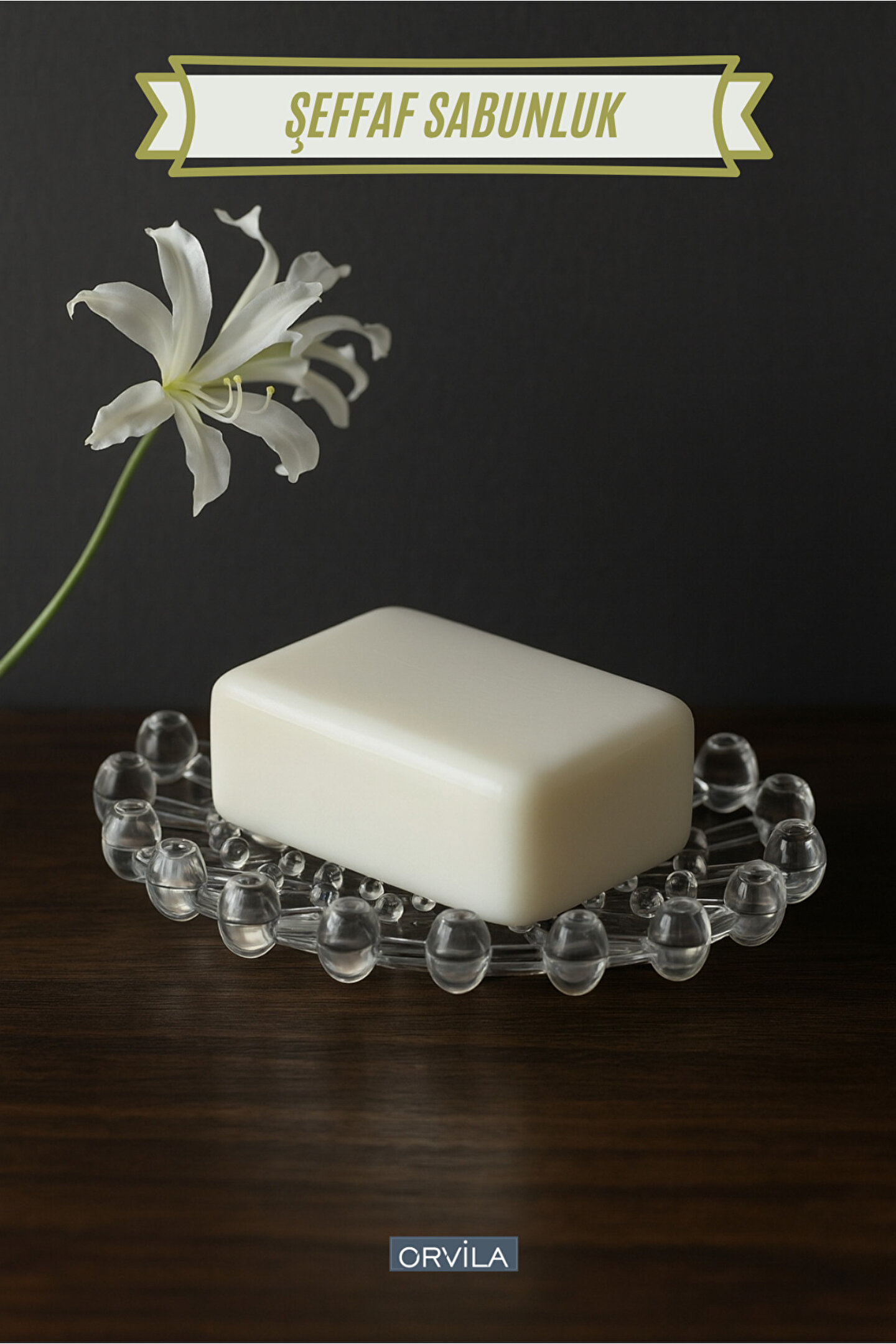 Şeffaf sabunluk; premium akrilik malzemeden üretilmiş dayanıklı ve uzun ömürlü yapı; sabunu zeminden yükselten delikli alt tasarım sayesinde hızlı kuruma sağlar; sabunun erimesini, yumuşamasını ve dağılmasını önler; kaydırmaz taban yapısı ile tezgâhta sabit durur; banyo ve mutfakta hijyenik kullanım sunar; su birikmesini azaltarak kullanım alanını daha düzenli ve temiz tutar; modern ve şık şeffaf görünümü ile her dekorasyon tarzına uyum sağlar; kompakt formu sayesinde lavabonun yanında az yer kaplar; kolay temizlenebilir yüzeyi sayesinde yalnızca su ile kısa sürede temizlenebilir; çizilmelere karşı dayanıklı yapısıyla uzun süre ilk günkü görüntüsünü korur; sabun kullanımını daha ekonomik hale getirerek sabunun ömrünü uzatır; minimalist tasarımı ile hem fonksiyonel hem de estetik bir banyo aksesuarı sunar; ev, ofis, otel, spa ve misafir banyo alanları için ideal bir hijyen çözümüdür.