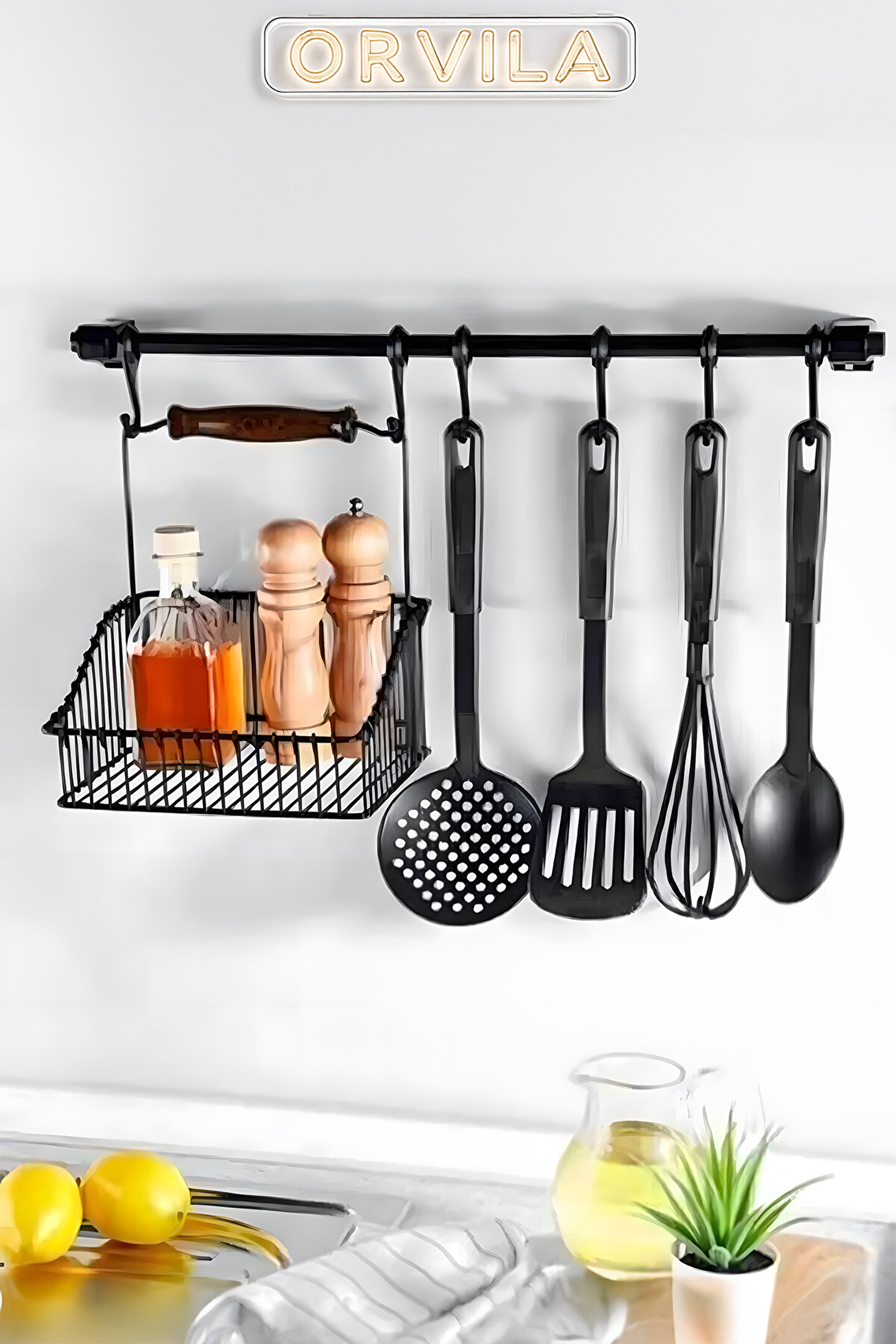 Çok Amaçlı Metal Ferforje Demir Sepet Siyah 20x20 cm ; Askı Demiri Uzunluğu: 53 Cm (METAL BORU - PLASTİK KANCA) ; Mutfaklarınızda ve banyolarınızda pratiklik kazanmak adına harika bir ürün.; ; Mutfaklarınızda baharatlık, fincan veya mutfak gereçlerini kolayca asabileceğiniz.; banyolarınızda banyo araç ve gereçlerini rahatlıkla koyup asabileceğiniz çok amaçlı ferforje sepet.; ; Kolay kurulumu ile duvarlarınıza dubel yardımı ile asabilirsiniz.; (4 adet Dubel ve 4 adet vida gönderimi yapılmaktadır.; ) ; Metal Sepet 20x20 Askı ve Kanca Takımı Mutfak Askı Demiri / 2'li Set ;