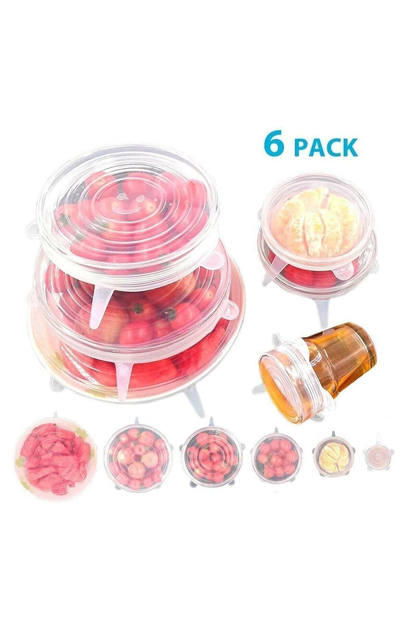 Tazeliği Koruyan Saklama Kabı Kapağı 6'lı Esnek Silikon Strech Kapaklar ; 6'lı Silikon Strech Kapaklar ile yiyeceklerinizi hava almayacak şekilde 6 farklı boyutta olan esnek silikon kapaklar ile muhafaza etmeniz oldukça kolay ve kullanımı çok pratik; Silikon malzemeden yapılmış olması sebebiyle kolayca esneyen bir yapıya sahiptir. Bu durum kapatacağı yüzeyi kolayca sarmasını sağlayacaktır.; Strech mantığı ile iş görmektedir. Strech kullanmanızı gerektiren tüm yüzeylerde pratik bir şekilde kullanabilirsiniz.; Kesildiği için yarım kalan ve hava ile teması sonrası kuruyan bozulmayı bekleyen meyvelerinizin üzerini de bu kapaklarla kapatmanız mümkün.; Böylelikle israfın önüne geçerek ev ekonominize de katkıda bulunabilirsiniz.; Ayrıva kullan at strechlerin görevini gören bir ürün olduğu için strech israfını da sonlandırmış olmaktadır.; Paket içerisinde 6 farklı boyda silikon kapak bulunmaktadır.;