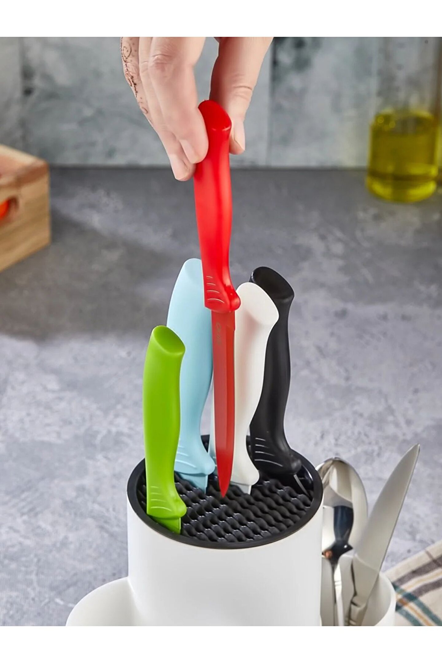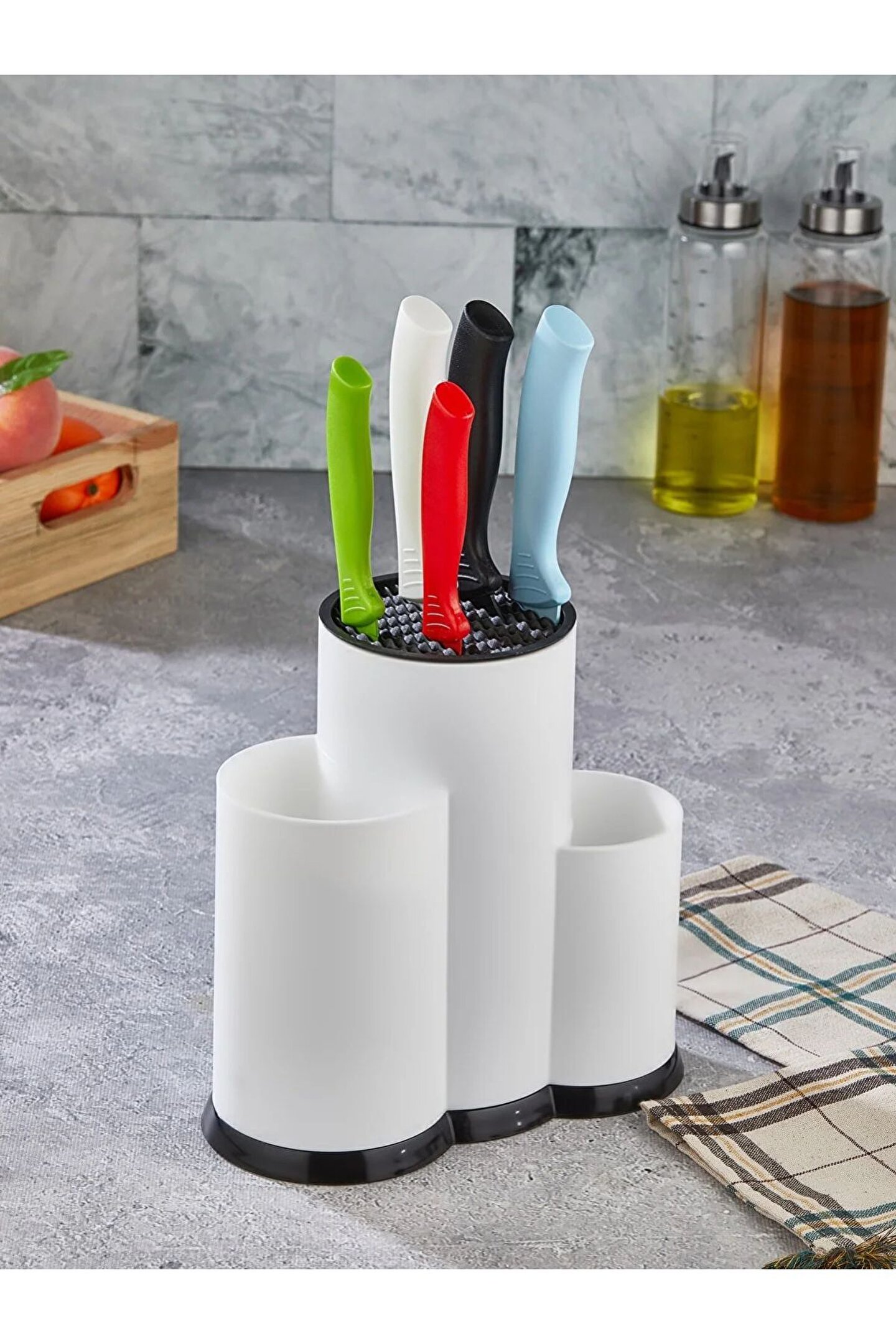 Tezgah Üstü Bölmeli Kaşık Bıçak Standı - Kaşıklık Bıçaklık Düzenleyici Organizer: ; ; Ürün Ölçüleri: 22,5 x 22 x 12 cm ; ; Tezgâh Üstü Bölmeli Bıçaklık Kaşıklık ; ; Geniş Haznesi Sayesinde Oldukça Kullanışlıdır. ; ; Kaliteli Plastiği ile Sağlam, Uzun Ömürlü Kullanım Sunar. ; ; Modern Tasarımı ile Hem Dekoratif Hem De Kullanışlıdır. ; ; 3 Adet Geniş Kaşık, Çatal ve Bıçak Bölmesi Mevcuttur. ; ; Zarif Tasarım Tezgâh Üstü Kaşıklık ile Kaşık, Çatal Ve Bıçaklarınızı Düzenleyin. ; ;