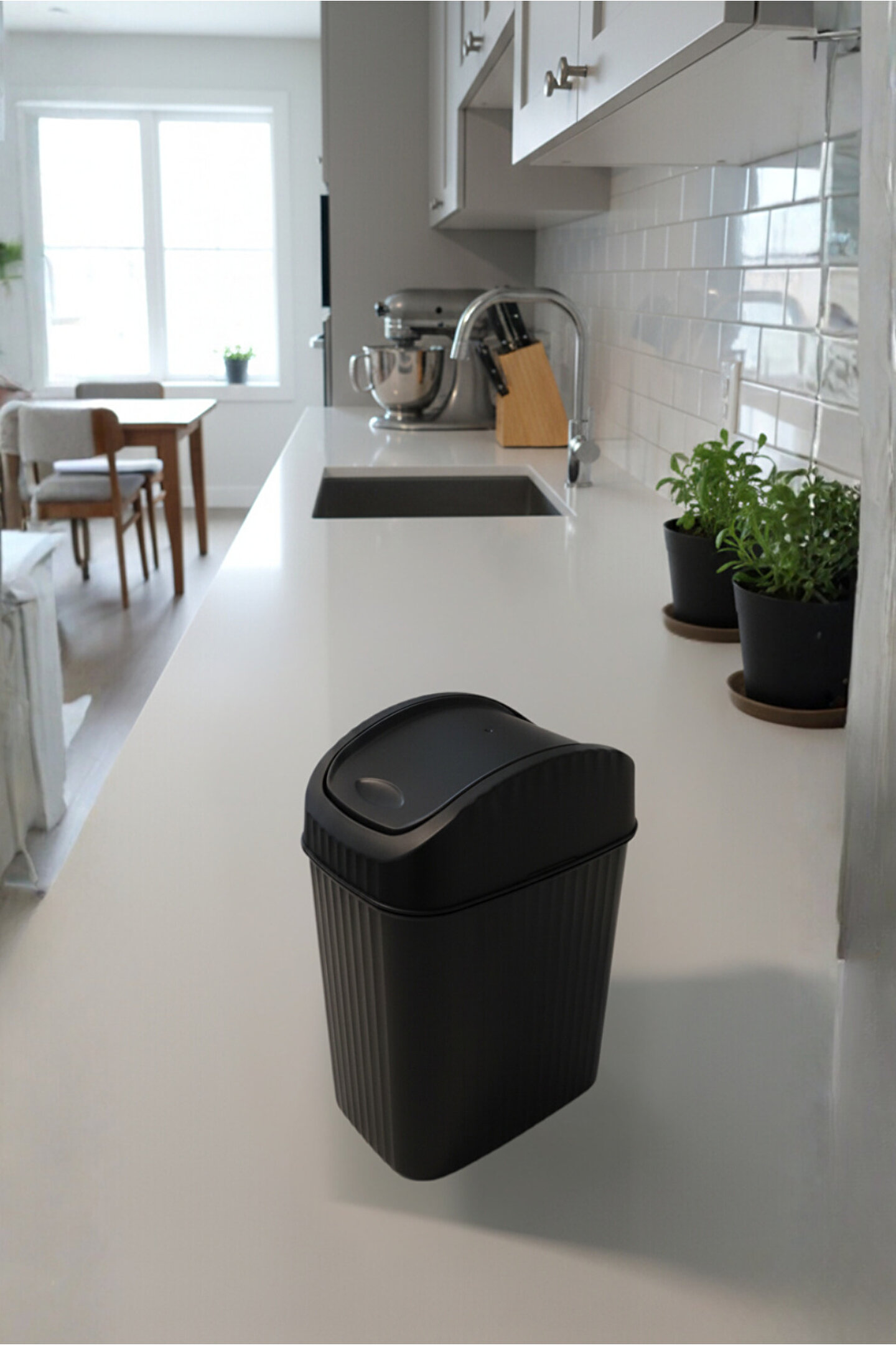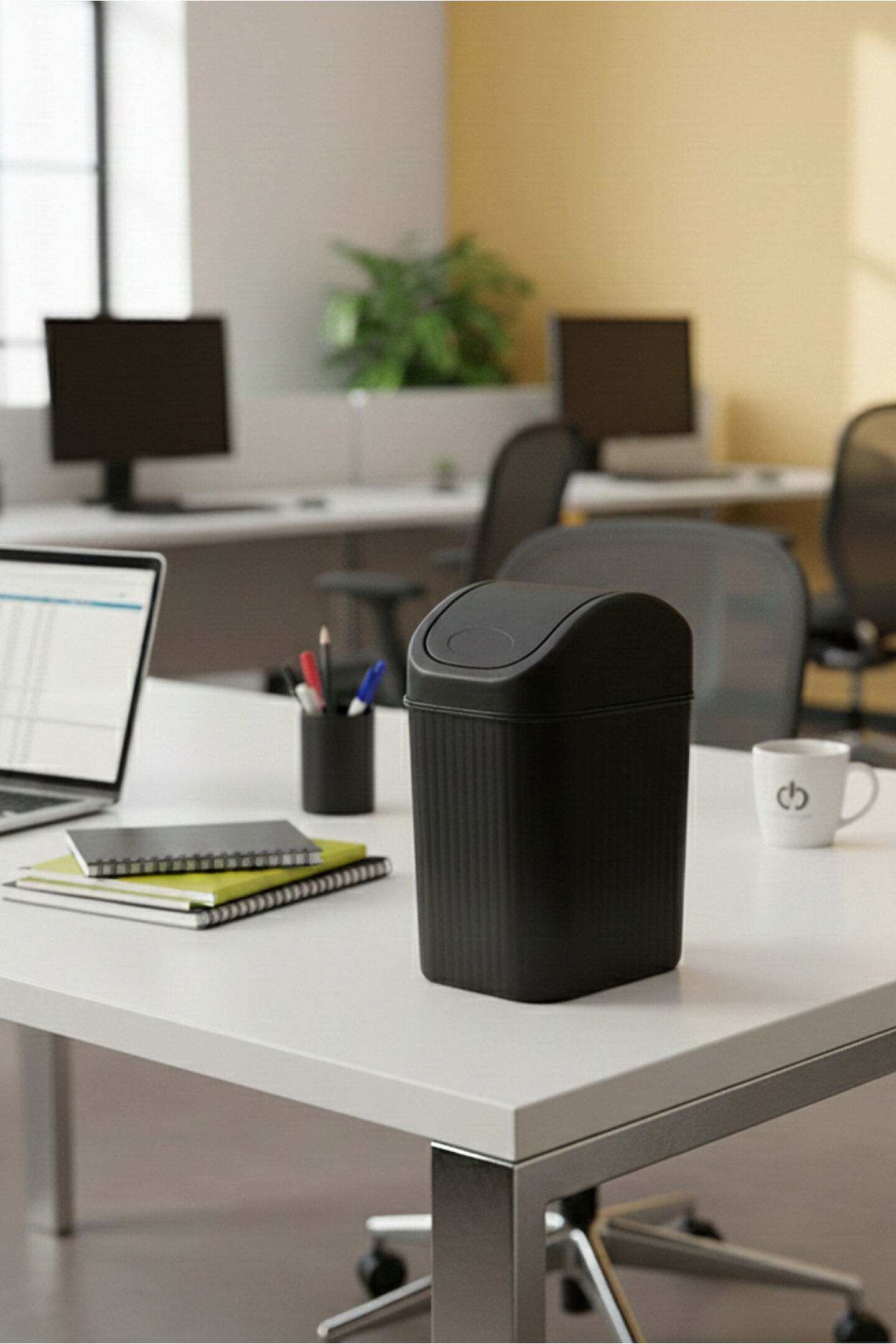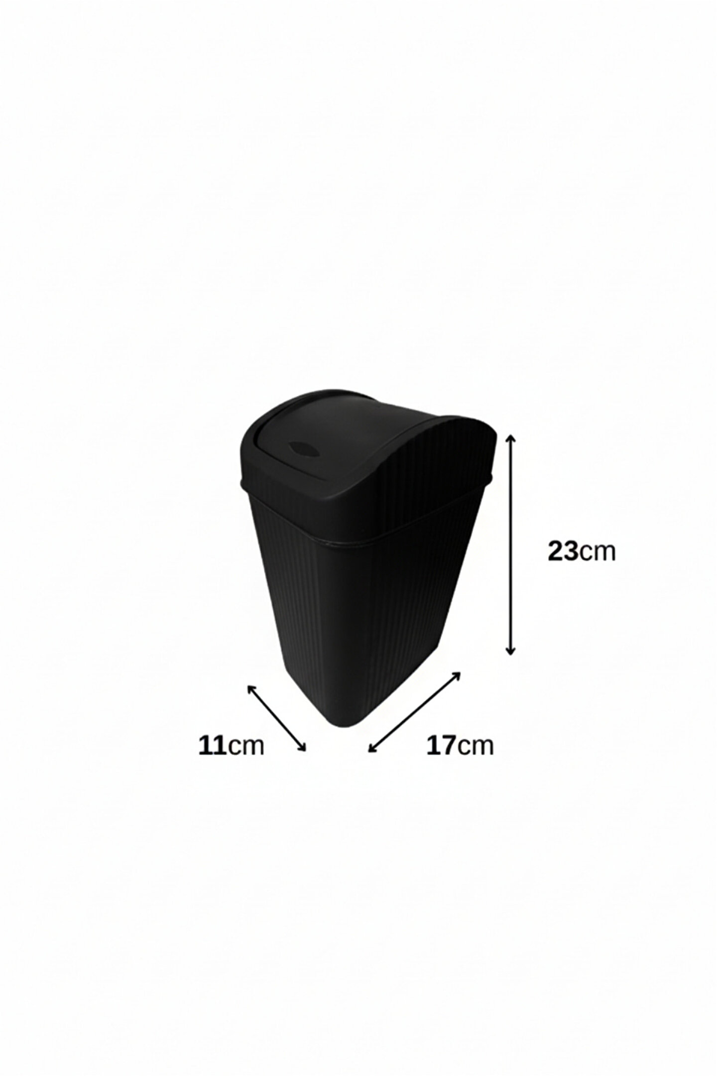 23 cm yüksekliğe; 17 cm genişliğe; 11 cm derinliğe sahip kompakt mini çöp kovası; küçük alanlarda maksimum kullanım kolaylığı sağlayan ergonomik tasarımı ile mutfak tezgahı, banyo lavabosu, ofis masası altı ve çalışma alanları için ideal bir çözümdür; sağlam plastik yapısı sayesinde kırılma ve çatlamalara karşı dayanıklıdır; hafif gövdesi sayesinde kolay taşınabilir; kapaklı yapısı kötü kokuları hapseder ve hijyen sağlar; hızlı açılıp kapanan ergonomik kapağı sayesinde pratik kullanım sunar; dar alanlara uyumlu üçgenimsi formu ile yerden tasarruf ettirir; modern siyah rengi tüm dekorasyon stilleri ile uyumludur; kaymaz alt yüzeyi sayesinde sabit durur; temizlik için kolayca boşaltılıp nemli bezle silinebilir; ev, ofis, öğrenci odası, mutfak, banyo ve çalışma masası gibi birçok alanda düzenli ve şık kullanım sağlar; minimal boyutları sayesinde çekmece kenarı, tezgah üzeri veya masa altına kolayca sığar; uzun ömürlü ve hijyenik kullanım için ideal bir çöptür.