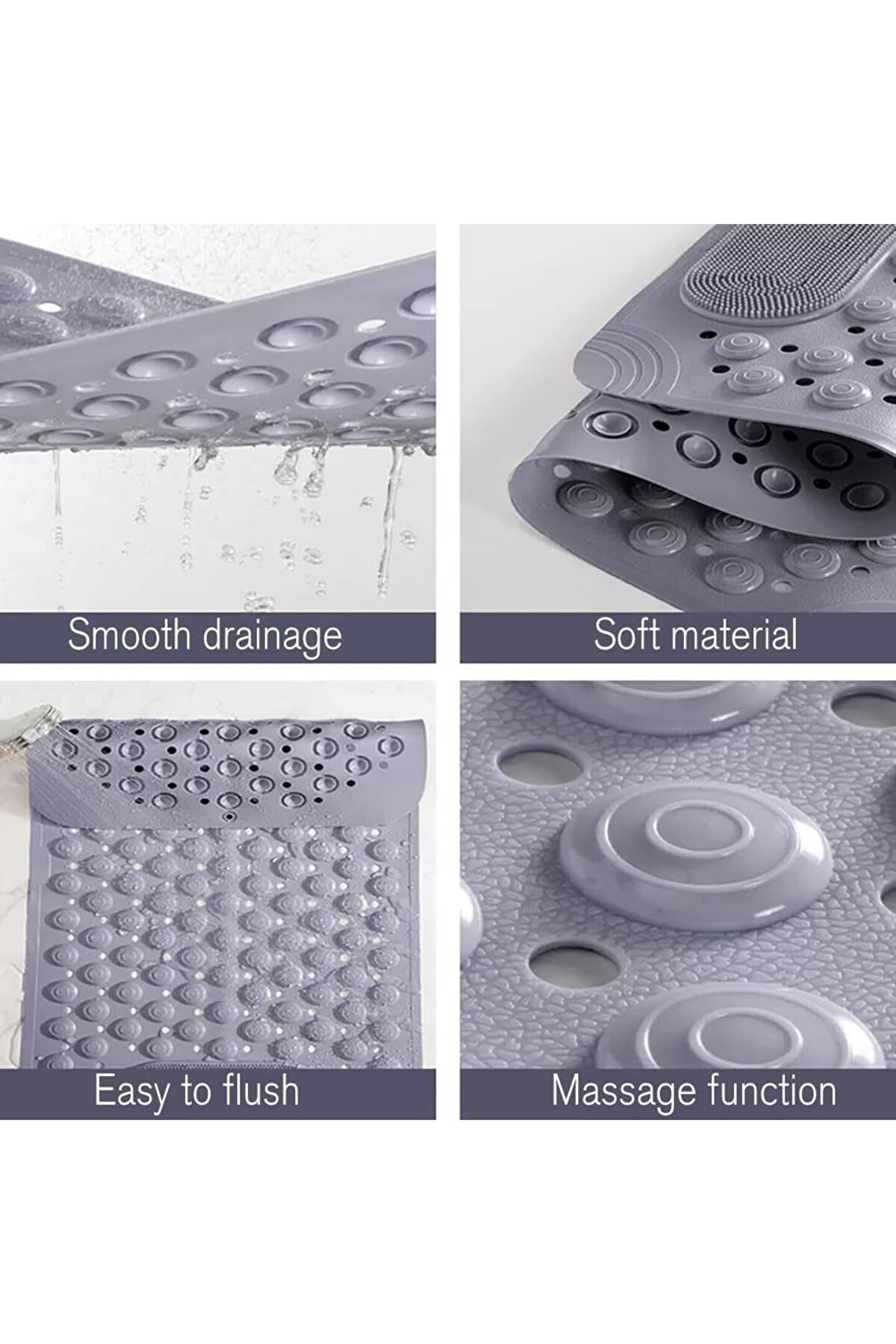 - Banyo İçi Kaydırmaz tabanlı masaj özellikli rahatlatan banyo paspası ; - Orta yükseklikteki kaymaz taban tasarımı ile banyonuzda güvenli adımlar sağlar.; ; - Polipropilen materyali sayesinde uzun ömürlü kullanım sunar ve kolay temizlenebilir özelliğiyle pratik bir bakım imkanı tanır.; ; - 36x70 cm boyutlarındaki bu paspas, duş kabinlerinizde veya küvetlerinizde mükemmel uyum sağlayarak estetik bir görünüm oluşturur.; ; - Tek parça halinde gelen bu ürün, montaj gerektirmeyen yapısıyla hızlı ve kolay kurulum avantajı sunar.; ; - Nötr gri rengi ve düz deseniyle her türlü banyo dekorasyonuna kolayca uyum sağlar.; ; -Zamansız bir şıklık katmak için idealdir.; ; - Yıkanabilir olması sayesinde hijyenik koşulları korumanızda size yardımcı olurken, TPE (Termodinamik Elastomer) bileşeni ile dayanıklılığı arttırılmıştır.; ; - Türkiye'de üretilmiş olması yerel üretim standartlarına uygunluk gösterirken aynı zamanda çevre dostu malzemelerden oluşmaktadır ;