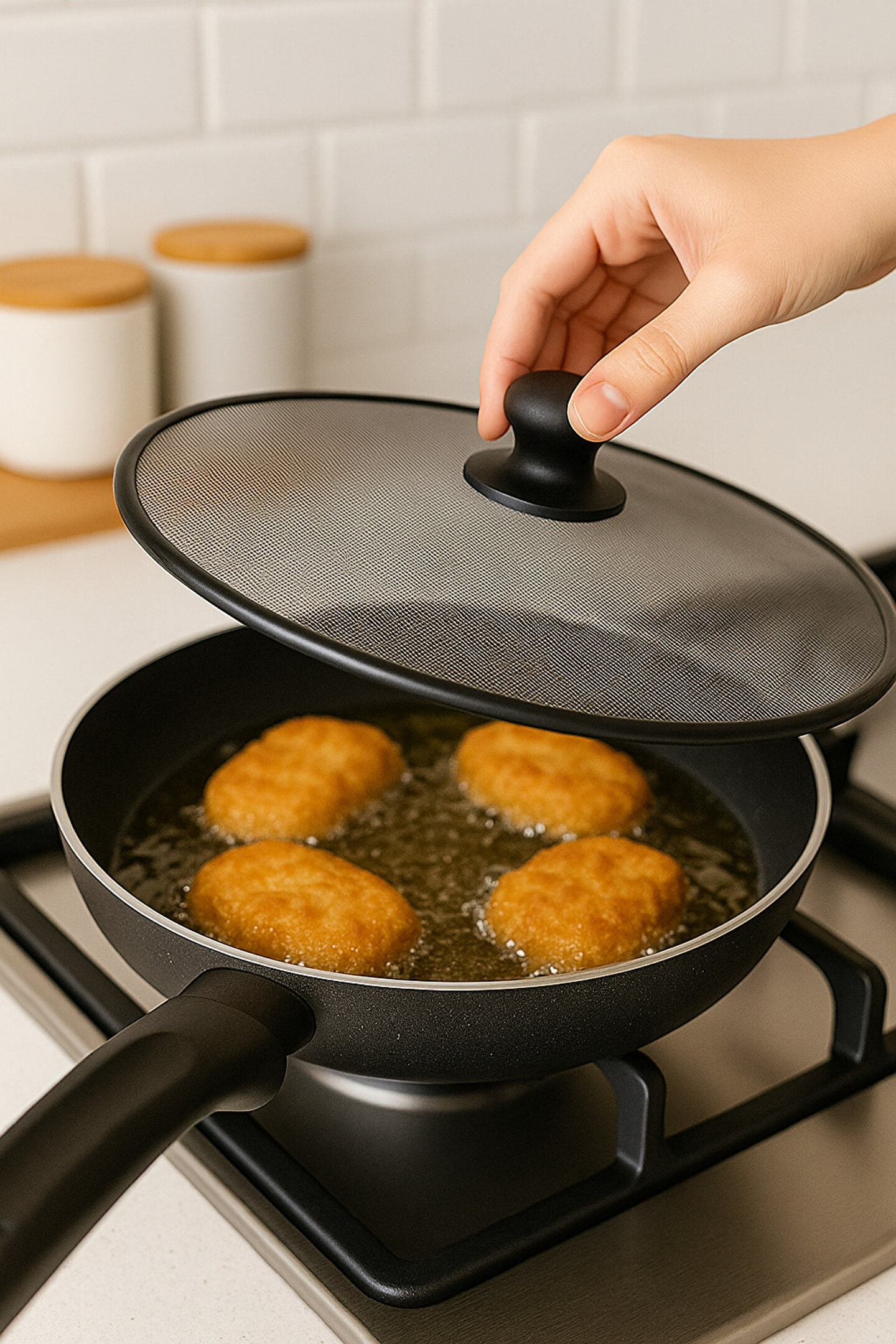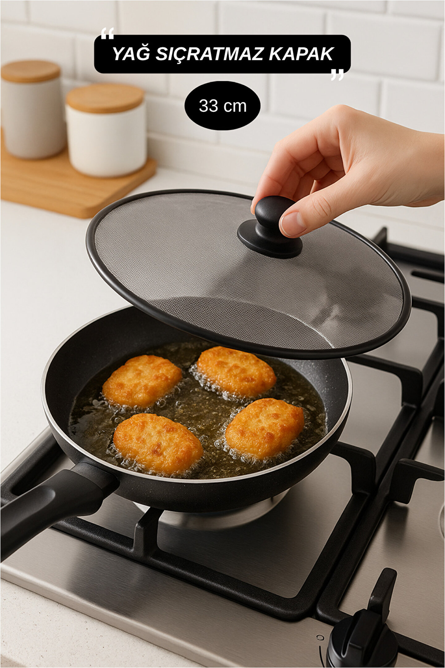Yağ sıçramasını etkili şekilde azaltan dayanıklı yapısı sayesinde kızartma yaparken mutfakta temizlik, hijyen ve düzen sağlayan bu yağ sıçratmaz kapak; yüksek ısıya dayanıklı dokusu ile sıcak yağın etrafa dağılmasını önlerken buharın rahatça dışarı çıkmasına imkan tanır; hafif ve ergonomik tasarımı sayesinde kullanımı son derece kolaydır ve tüm standart tava boylarıyla uyumludur; kızartma, köfte, balık, patates, sebze ve yağ sıçratma riski yüksek olan tüm pişirme türlerinde ekstra güvenlik sağlar; yüzeyi sayesinde hava akışını kesmeden pişirme performansını korur ve yemeklerin daha kıtır, daha dengeli pişmesine yardımcı olur; mutfak tezgahı, ocak yüzeyi ve duvarların kirlenmesini önleyerek temizlik süresini azaltır; uzun ömürlü yapısı ile günlük kullanımda dayanıklılık sunar; elde yıkamaya uygun olduğu gibi bulaşık makinesinde de kolayca temizlenebilir; hafif yapısı, kolay taşınabilir oluşu ve ergonomik tutma noktası sayesinde her mutfakta pratik bir yardımcıdır; yağ sıçramasını en aza indirerek güvenli bir pişirme deneyimi sunar ve mutfakta düzen isteyen herkes için ideal bir üründür.;