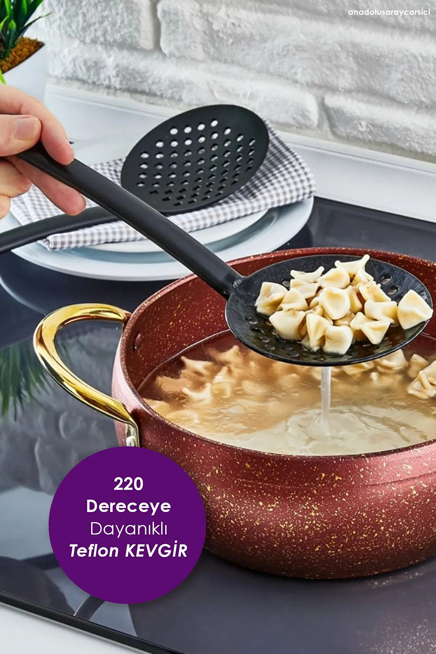 Teflon Servis Kevgiri 220 °C sıcaklığa kadar dayanıklı olup rahat ve güvenle kullanabilirsiniz 220 Dereceye Dayanıklı Gri ve Siyah Renk Seçeneklerinden Gönderim Yapılmaktadır. ;