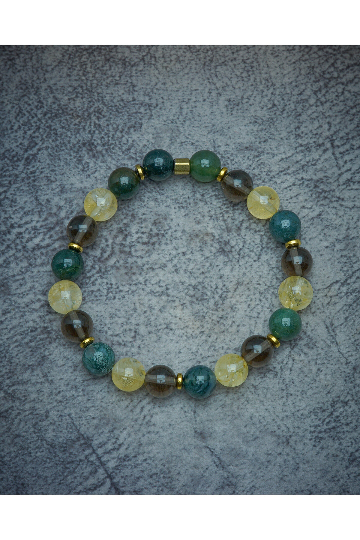Bu bileklik, güçlü ama zaman zaman iç dünyasında zorlanan Başak burcuna denge ve şifa sunmak amacıyla tasarlandı.; İçeriğindeki Sitrin taşı, Başak ın sürekli çalışan zihnine neşe, canlılık ve özgüven kazandırırken, aynı zamanda pozitif enerji ve bolluk çekerek ruh halini dengeler.; Dumanlı Kuvars, negatif enerjiyi dönüştürme ve topraklama özelliğiyle, Başak ın kendine yönelttiği aşırı eleştiriyi yumuşatır ve zihinsel sakinlik sağlar.; Yosun Akik ise doğayla olan bağını güçlendirerek, stresin ve zihinsel yorgunluğun azalmasına yardımcı olur; huzurlu, yumuşak bir enerji yayar.; Bu üç taşın uyumu, Başak burcunun analitik zek sını, üretkenliğini ve içsel huzurunu dengeli bir enerji akışıyla buluşturur.; Bilek çevrenizi ölçmek için bir mezureyi bileğinizin en geniş yerine, çok sıkmadan ancak tam oturacak şekilde dolayın.; Mezurenin başlangıç noktası ile birleştiği yeri okuyarak ölçünüzü belirleyin.; Eğer mezureniz yoksa, bir ip veya şerit kullanarak bileğinizi ölçüp, ardından bir cetvelle uzunluğunu belirleyebilirsiniz.; Doğal taşlar, yüzyıllardır farklı kültürlerde enerjileri ve faydalı etkileriyle tanınmış ve kullanılmıştır.; Ancak bu etkiler kişisel inanç, deneyim ve algıya bağlı olarak değişiklik gösterebilir.; Bu taşların doğal güzellikleri ve eşsiz enerjileri, günlük yaşamınıza estetik ve anlam katabilir.