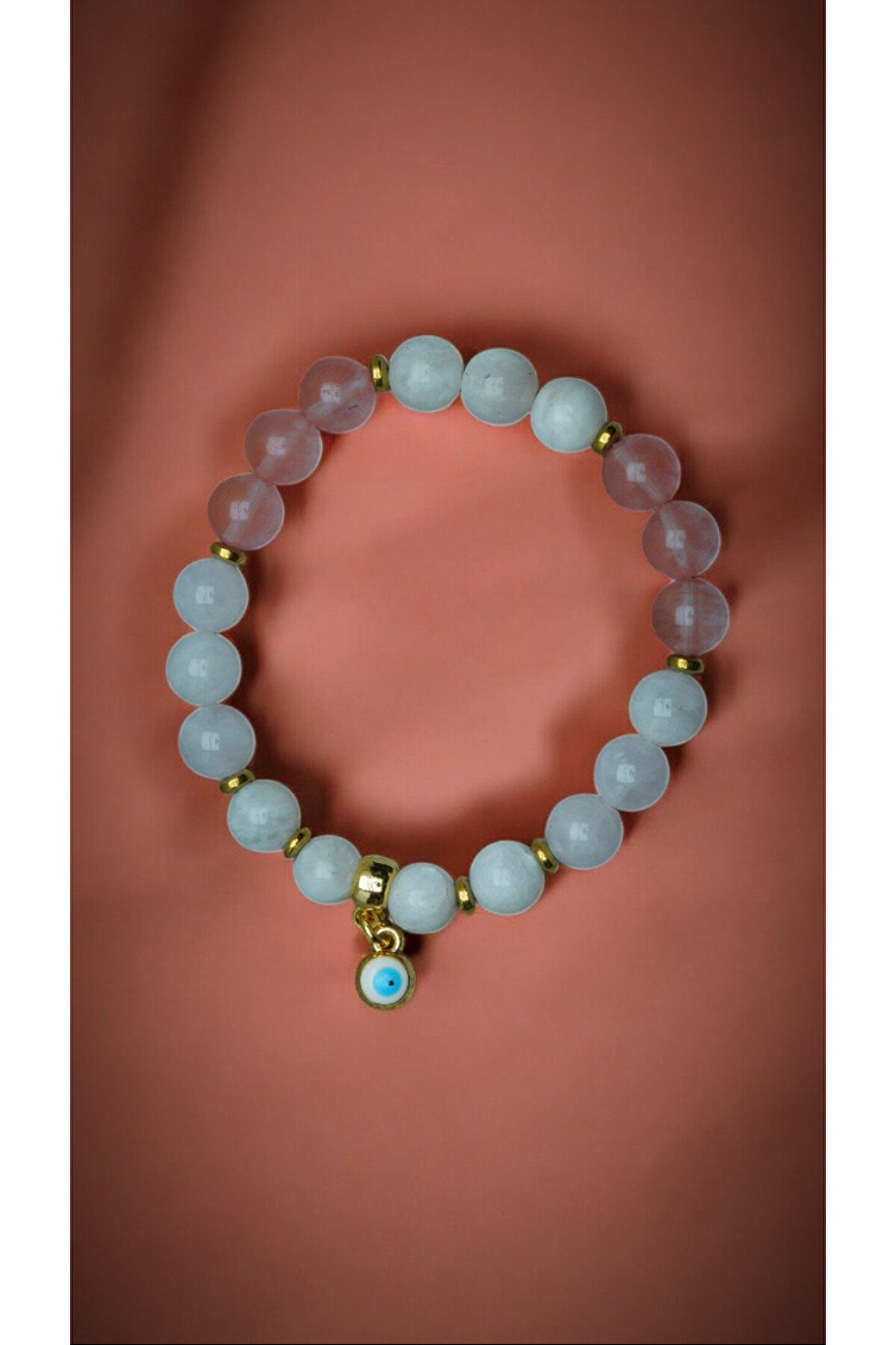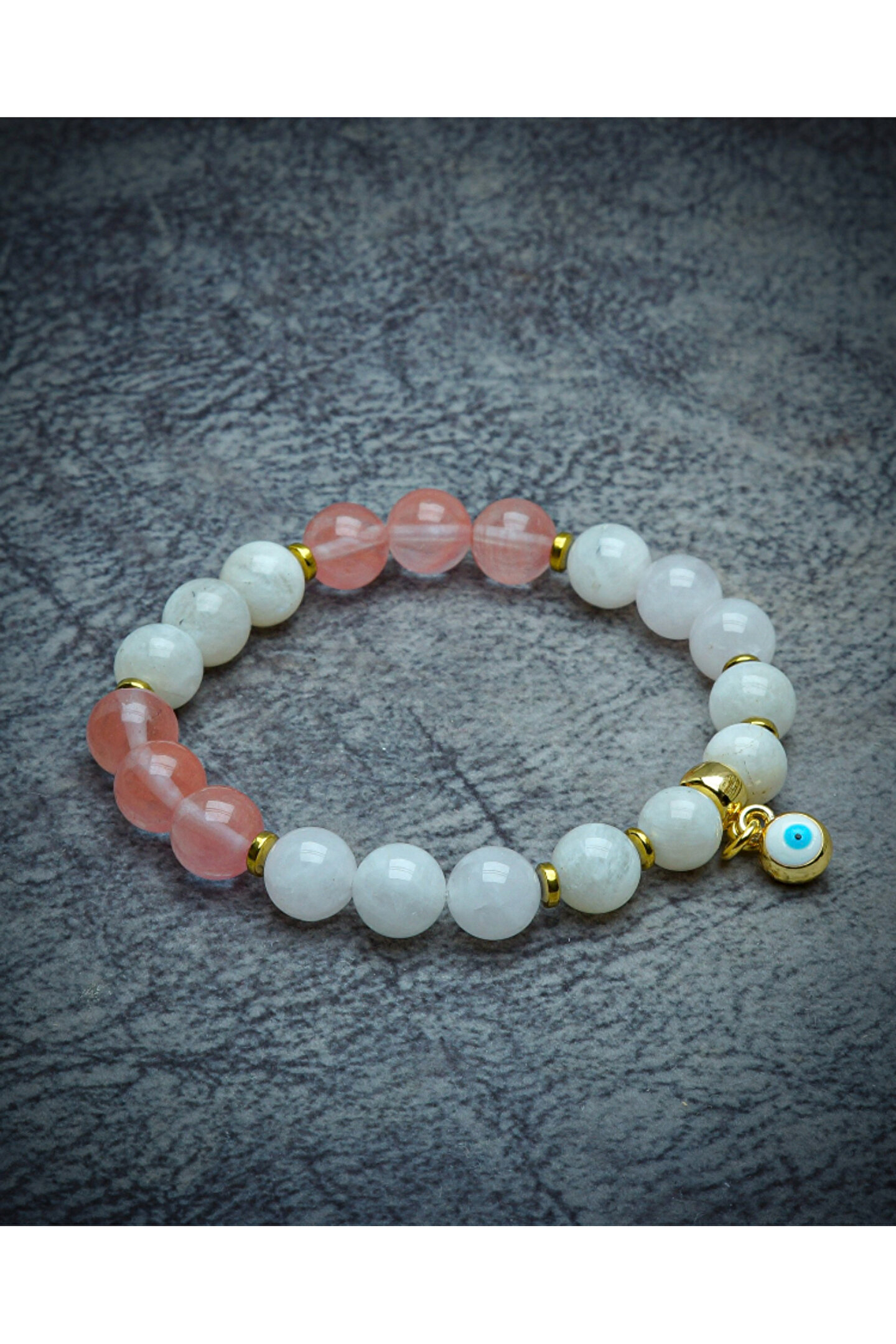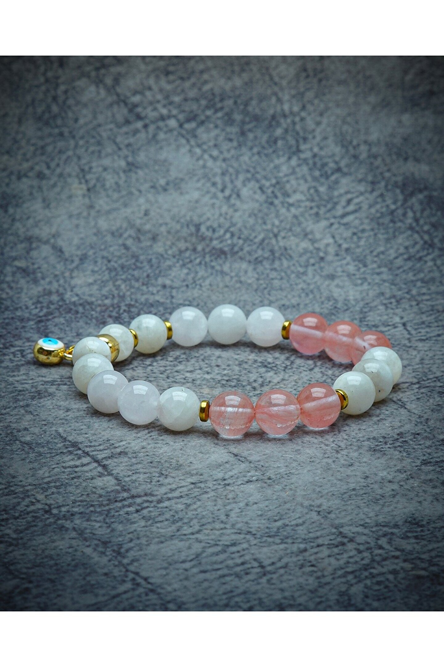 Ay taşı, pembe kuvars ve gül kuvarsın yumuşak enerjileriyle tasarlanan bu özel bileklik; kalbinizi sevgiye, huzura ve içsel dengeye açmak için yanınızda.; Ay taşı, duygusal dengeyi desteklerken sezgilerinizi güçlendirir.; Pembe kuvars, kalbi şefkatle ve sevgiyle bağ kurmayı kolaylaştırır.; Gül kuvars ise hem kendinize hem çevrenize karşı sevgi dolu bir bakış geliştirmenize yardımcı olur.; Aşk ya da kısmet arayışında olun ya da olmayın; bu bileklik, kalpten gelen niyetlerle atılan her adımda sizi desteklemek için tasarlandı.; Bilek çevrenizi ölçmek için bir mezureyi bileğinizin en geniş yerine, çok sıkmadan ancak tam oturacak şekilde dolayın.; Mezurenin başlangıç noktası ile birleştiği yeri okuyarak ölçünüzü belirleyin.; Eğer mezureniz yoksa, bir ip veya şerit kullanarak bileğinizi ölçüp, ardından bir cetvelle uzunluğunu belirleyebilirsiniz.; Doğal taşlar, yüzyıllardır farklı kültürlerde enerjileri ve faydalı etkileriyle tanınmış ve kullanılmıştır.; Ancak bu etkiler kişisel inanç, deneyim ve algıya bağlı olarak değişiklik gösterebilir.; Bu taşların doğal güzellikleri ve eşsiz enerjileri, günlük yaşamınıza estetik ve anlam katabilir.