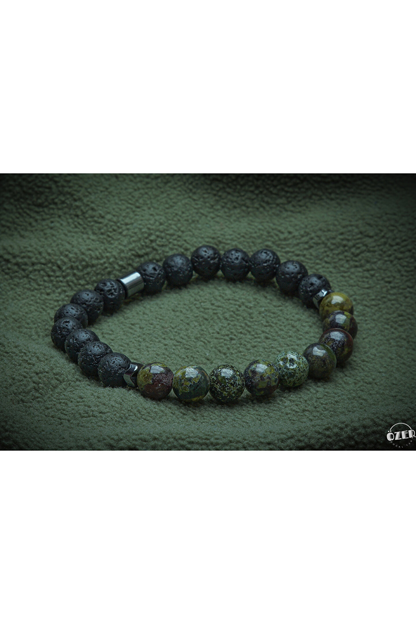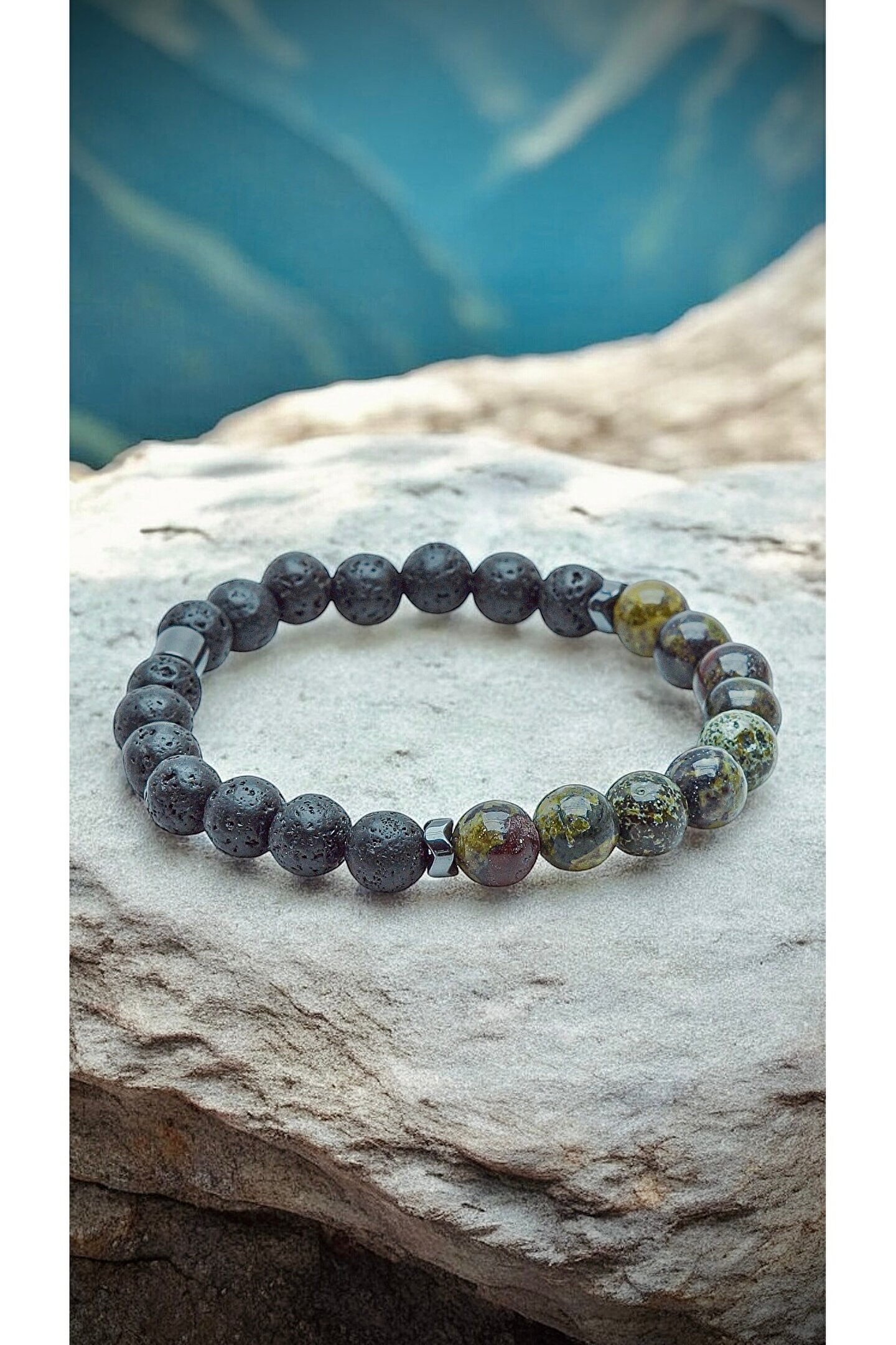 Doğanın enerjisiyle güç bulun, her adımda dengeyi hissedin!”Kan taşı, fiziksel ve ruhsal dayanıklılığı artırırken aynı zamanda cesareti ve özgüveni destekler.; Lav taşı ise volkanik kökeni sayesinde toprağın enerjisini taşıyarak denge ve koruma sağlar.; Bu bileklik, iki güçlü taşın enerjisini zarif bir tasarımla birleştirerek hem stilinizi hem de enerjinizi tamamlıyor.; Doğanın şifasını bileğinizde taşıyın.; Bilek çevrenizi ölçmek için bir mezureyi bileğinizin en geniş yerine, çok sıkmadan ancak tam oturacak şekilde dolayın.; Mezurenin başlangıç noktası ile birleştiği yeri okuyarak ölçünüzü belirleyin.; Eğer mezureniz yoksa, bir ip veya şerit kullanarak bileğinizi ölçüp, ardından bir cetvelle uzunluğunu belirleyebilirsiniz.; Doğal taşlar, yüzyıllardır farklı kültürlerde enerjileri ve faydalı etkileriyle tanınmış ve kullanılmıştır.; Ancak bu etkiler kişisel inanç, deneyim ve algıya bağlı olarak değişiklik gösterebilir.; Bu taşların doğal güzellikleri ve eşsiz enerjileri, günlük yaşamınıza estetik ve anlam katabilir.