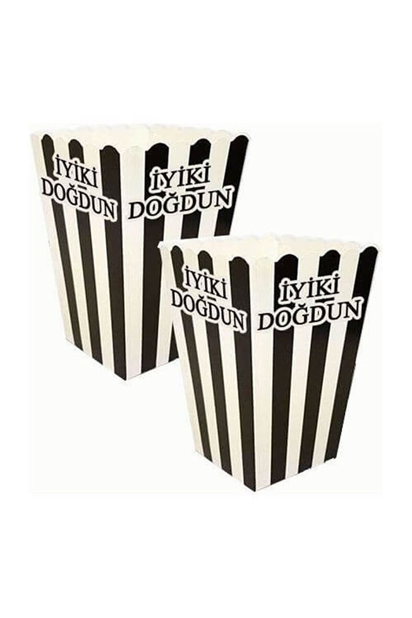 Siyah Beyaz İyi ki Doğdun Yazılı Taraftar Mısır Kutusu 8 li