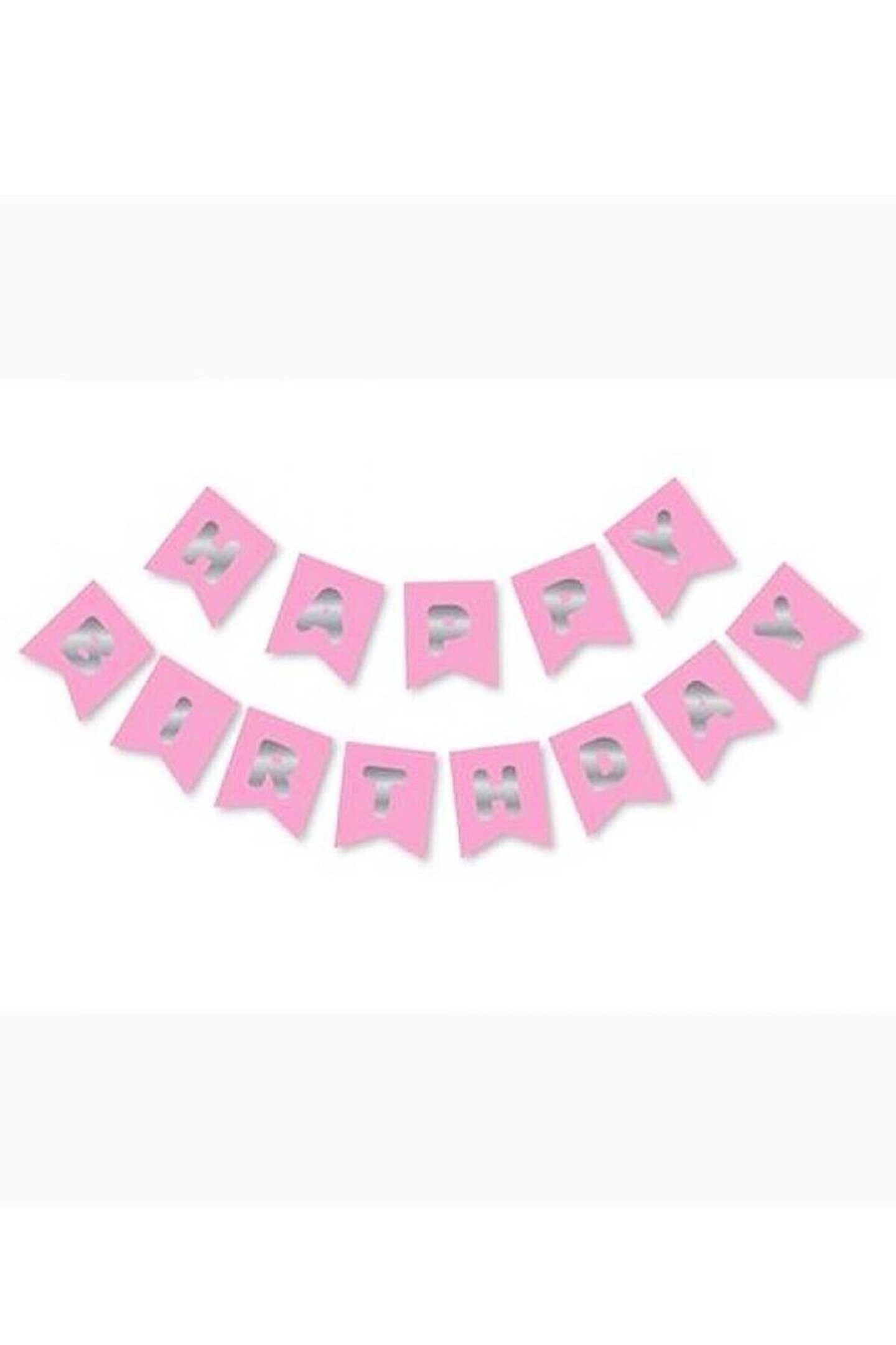 Happy Birthday Yazı Doğum Günü Banner Pembe Gümüş
