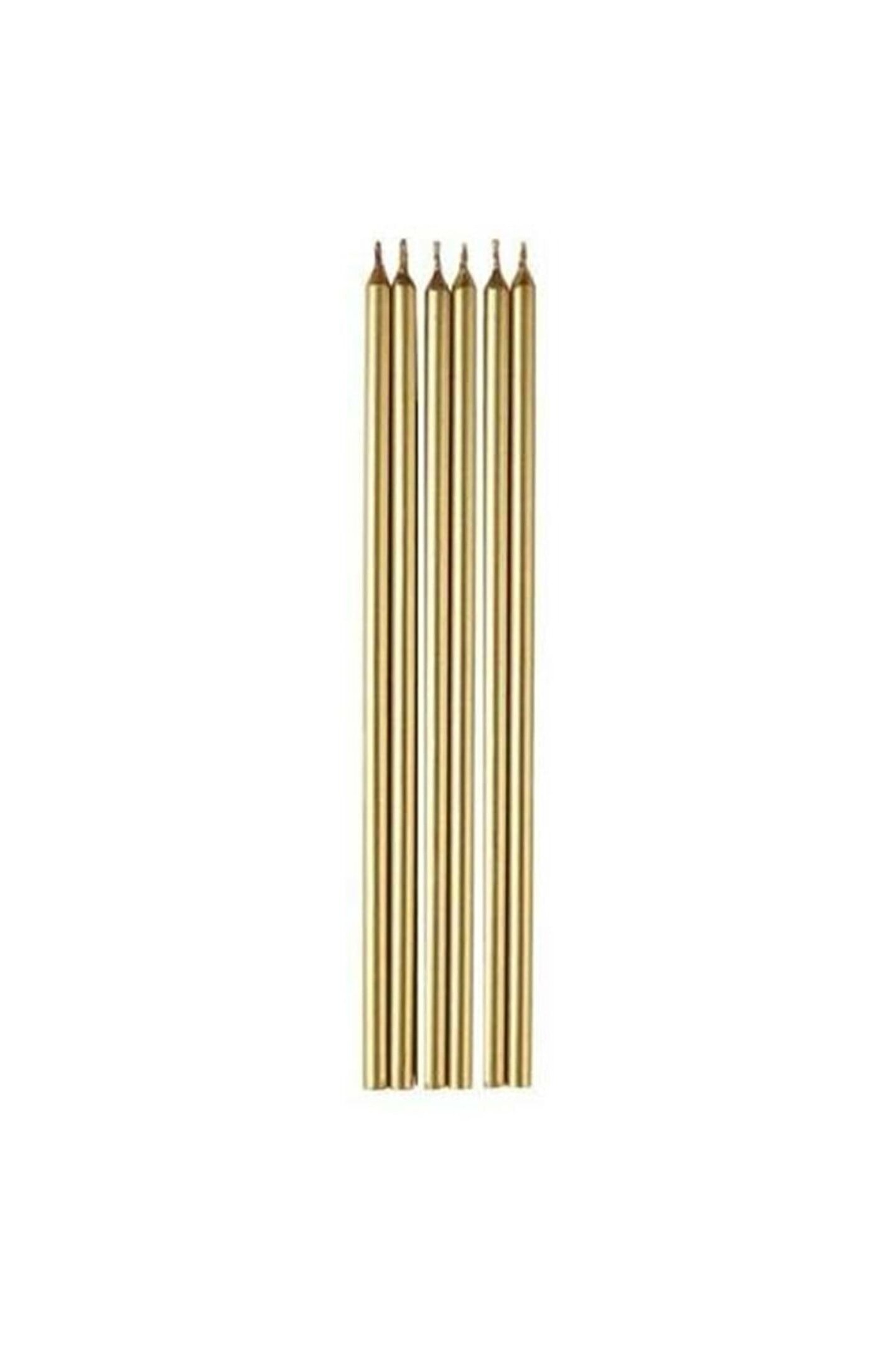 - Uzun Gold Pasta Mumu, 20 cm boyutuyla dikkat çeken şık bir tasarıma sahiptir.; - 6'lı set halinde sunulan bu mumlar, özel günlerde dekoratif bir dokunuş sağlar.; - Altın rengi parlaklığı ile mekanınıza zarafet katar ve göz alıcı bir atmosfer oluşturur.; - Uzun tasarım sayesinde uzun süreli yanma imkanı sunar ve mum ışığının keyfini daha uzun süre çıkarabilirsiniz.; - Pasta mumu olarak adlandırılan bu ürün, pasta sunumlarınıza estetik bir görünüm kazandırır.;