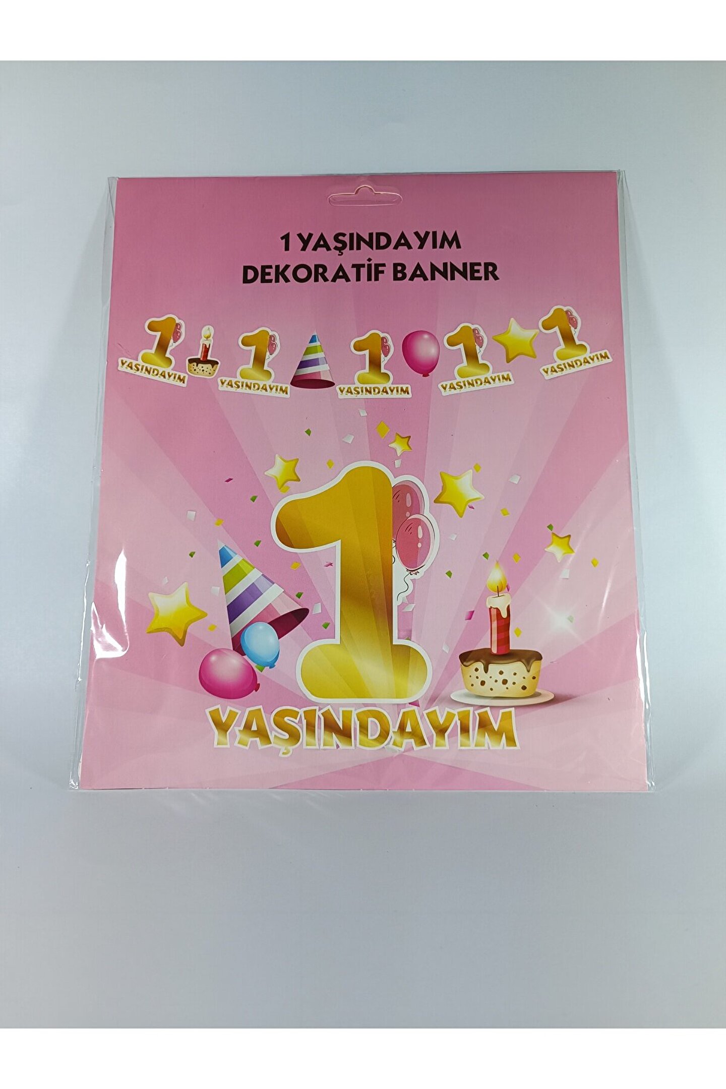 1 Yaşındayım Temalı Kız Çocuk Pembe Doğum Günü Kutlama Dekoratif Banner