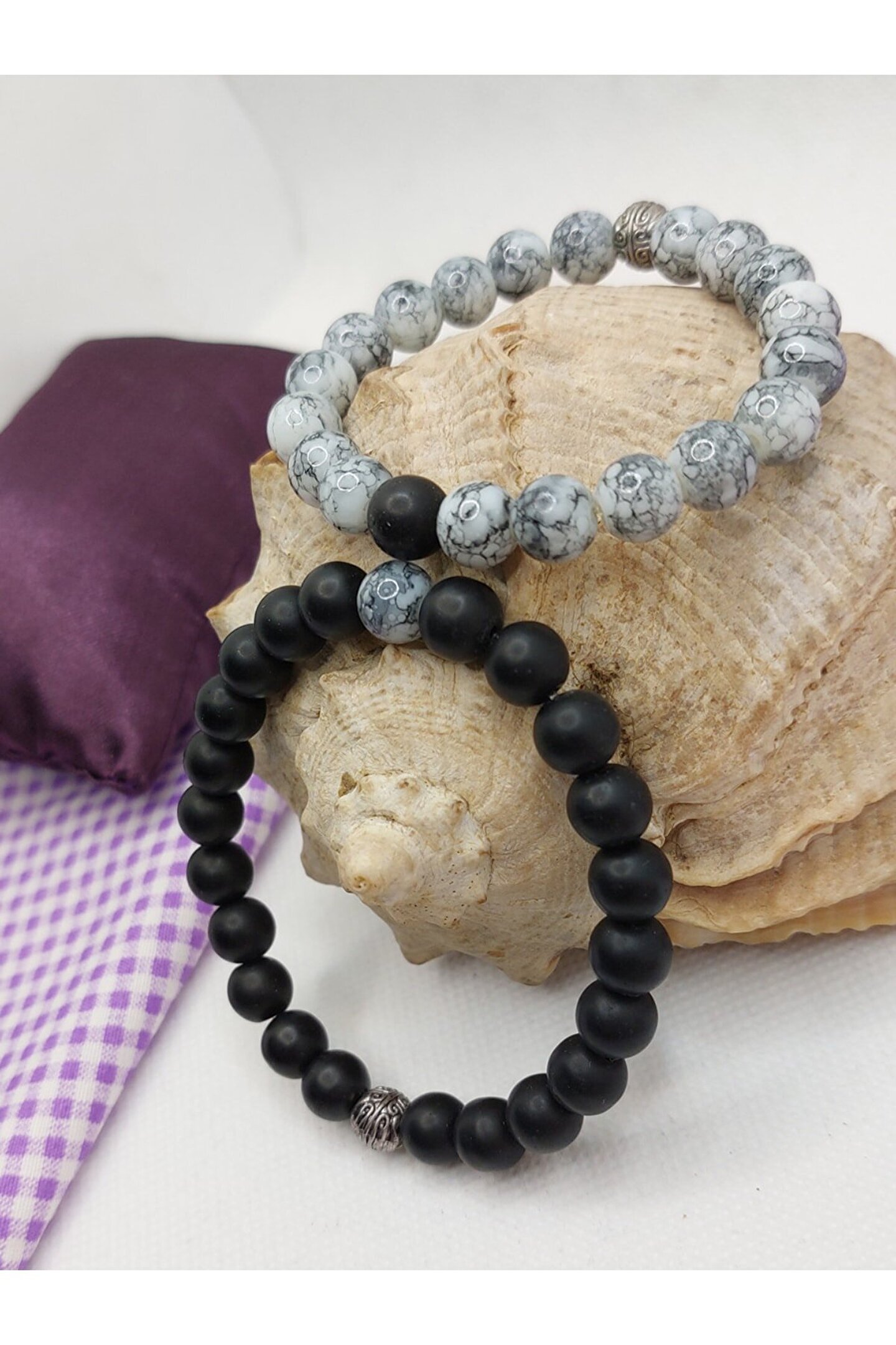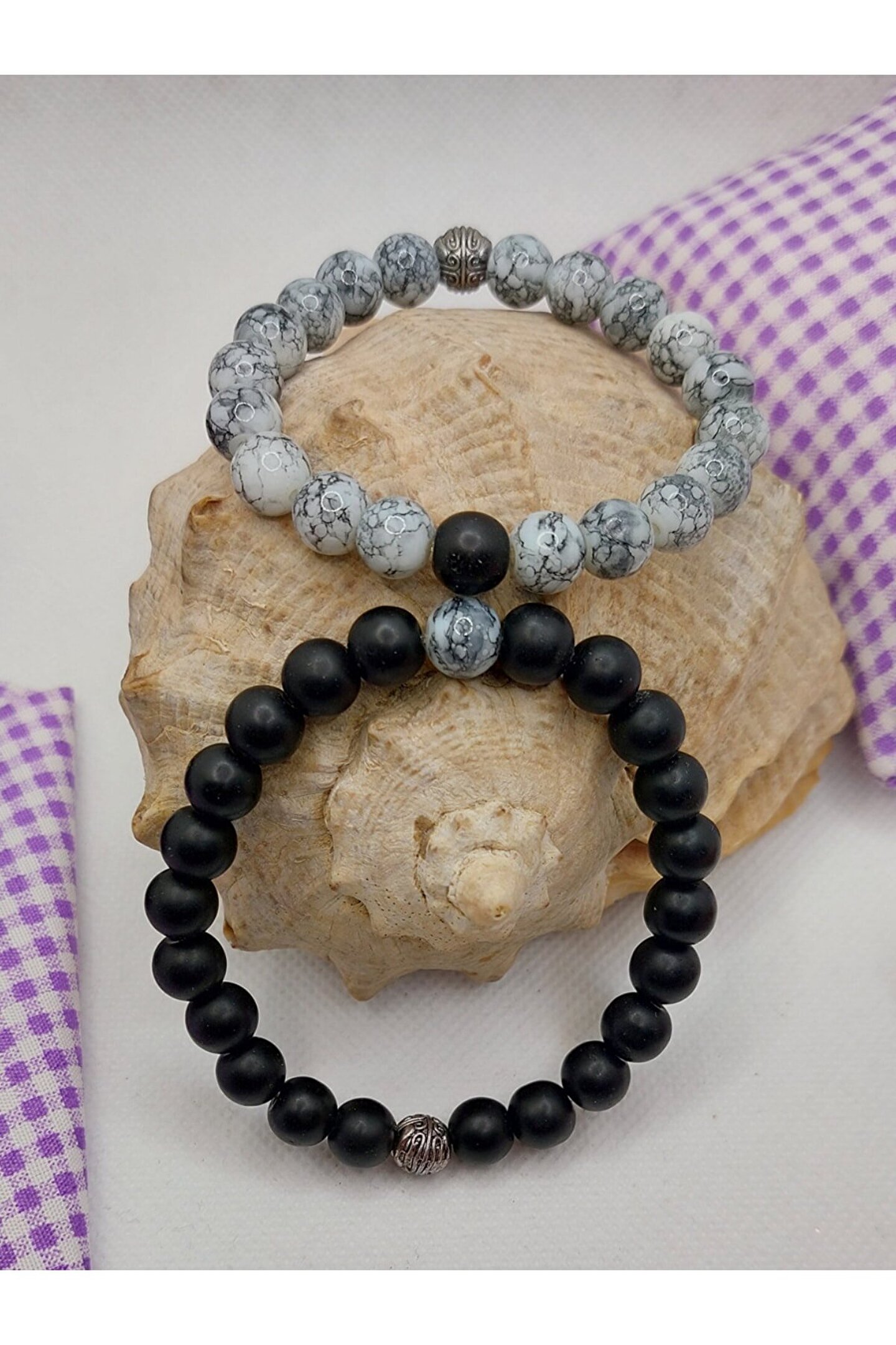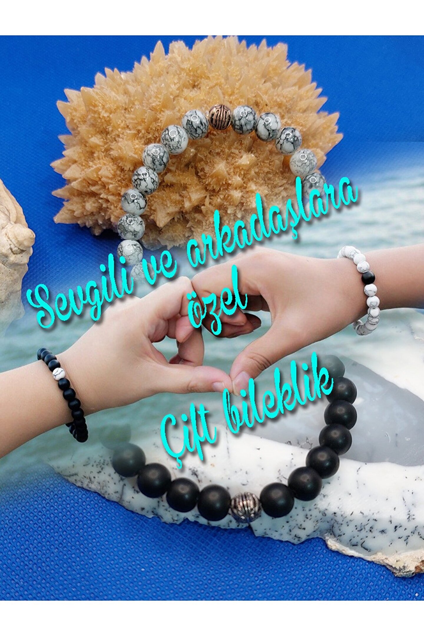 Doğal taş kullanımı sayesinde her bileklik benzersiz ve otantik bir görünüm sunar; Oniks ve havlit gibi değerli taşların birleşimi, şıklığı ve zarafeti bir arada barındırır; Çift sevgili bileklik tasarımı, sevginizi simgeleyen özel bir hediye seçeneği olarak öne çıkar; Taş materyalinin doğal yapısı, bilekliğin dayanıklılığını ve uzun ömürlü kullanımını garanti eder;