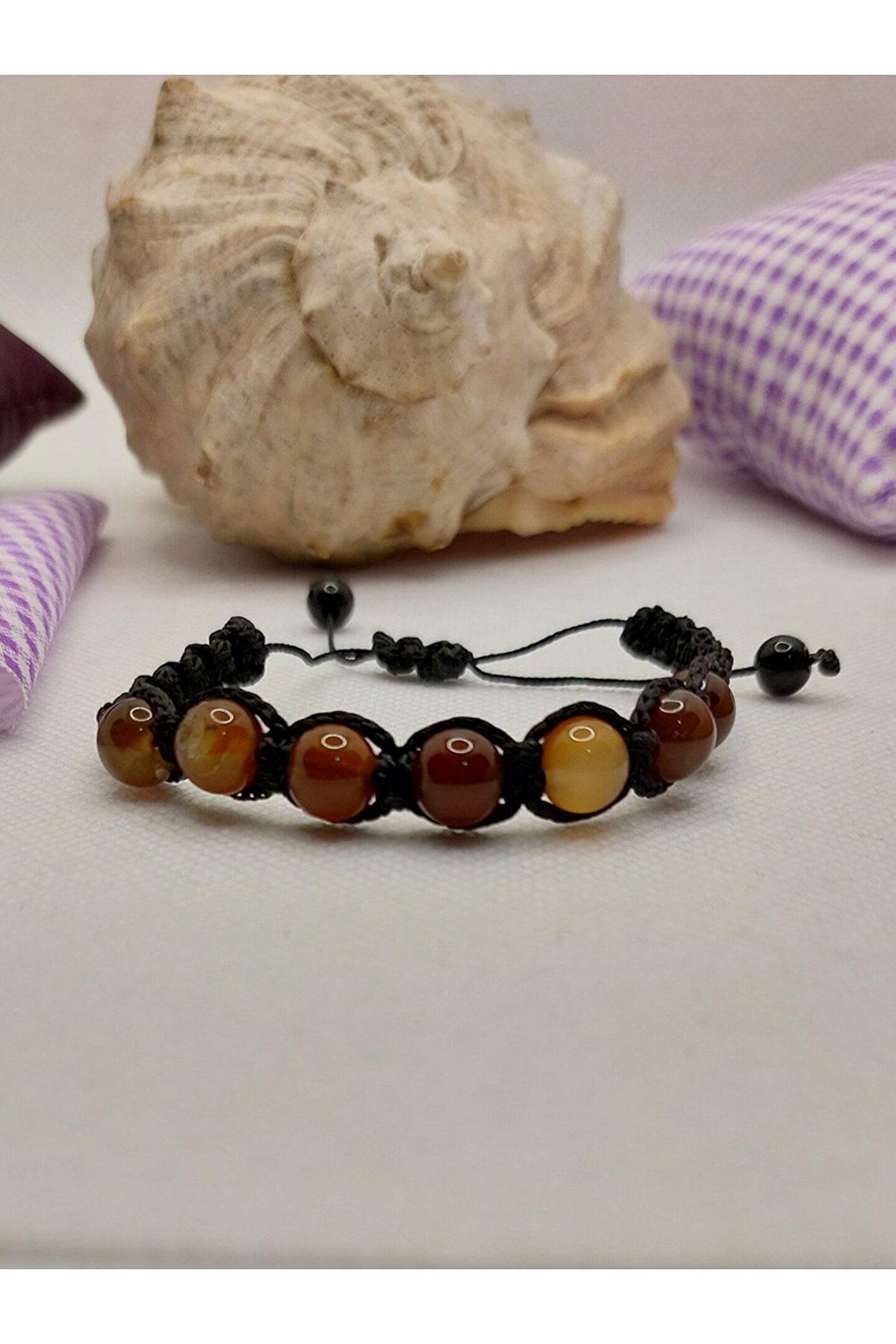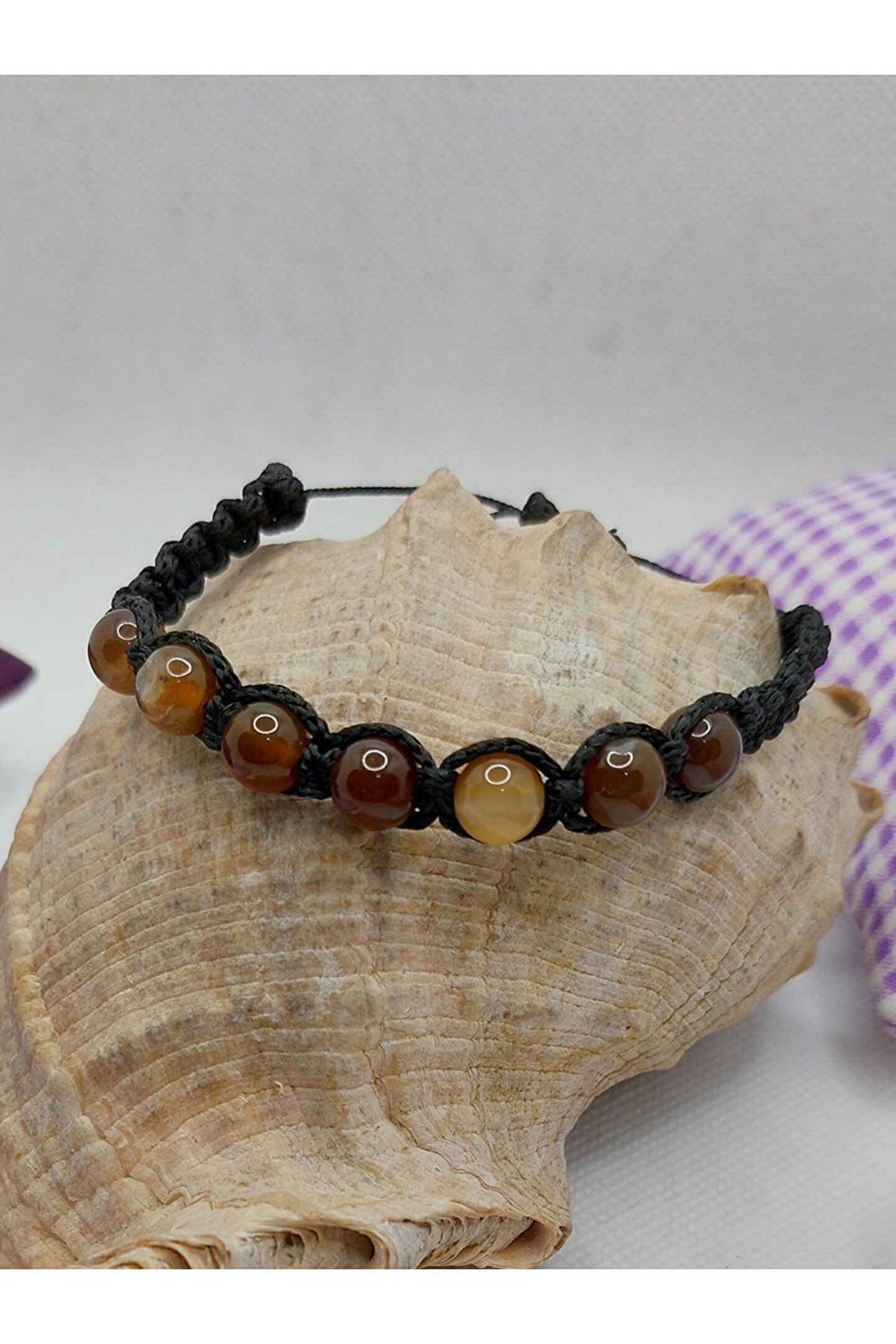 Doğal akik taşı kullanılarak üretilmiş, her bir bileklik benzersiz ve özgün bir tasarıma sahiptir; Asansörlü yapısı sayesinde bileklik, kolayca açılıp kapanabilir ve farklı boyutlarda ayarlanabilir; Kahverengi tonlarındaki akik taşı, zarif ve şık bir görünüm sunar; Doğal taş materyali ile hem dayanıklılık hem de estetik bir dokunuş sağlar;