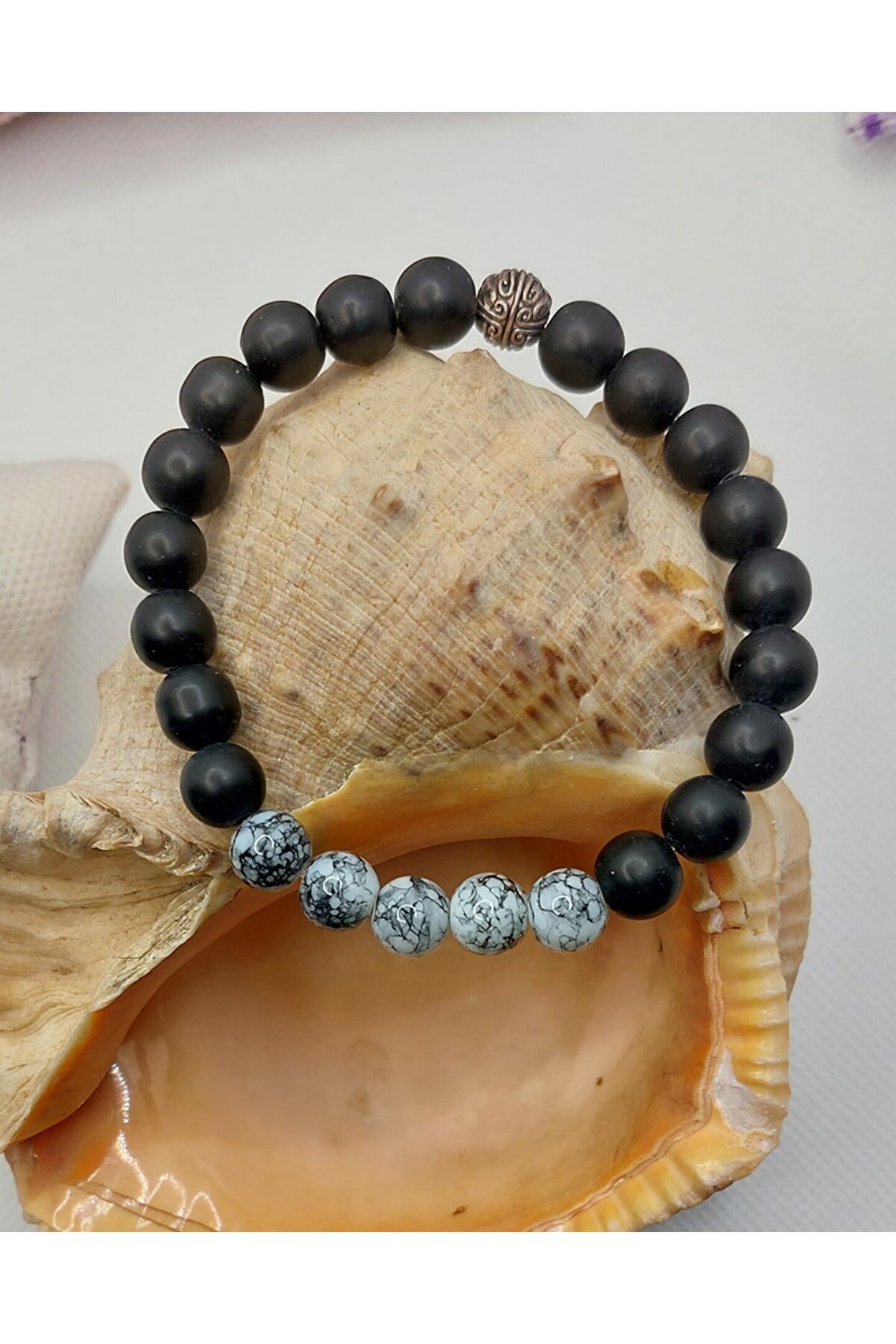 - Doğal taş kullanımı sayesinde her bileklik benzersiz ve otantik bir görünüm sunar; - Oniks taşı, zarif ve şık tasarımıyla dikkat çekerken, havlit bileklik ile birleştiğinde modern ve sofistike bir stil oluşturur; - Doğal taş materyaliyle hem dayanıklılık hem de estetik bir dokunuş sağlar; uzun süreli kullanım için idealdir; - Siyah rengi, her türlü kıyafetle kolayca uyum sağlayarak günlük veya özel günlerde şıklığınızı tamamlar;