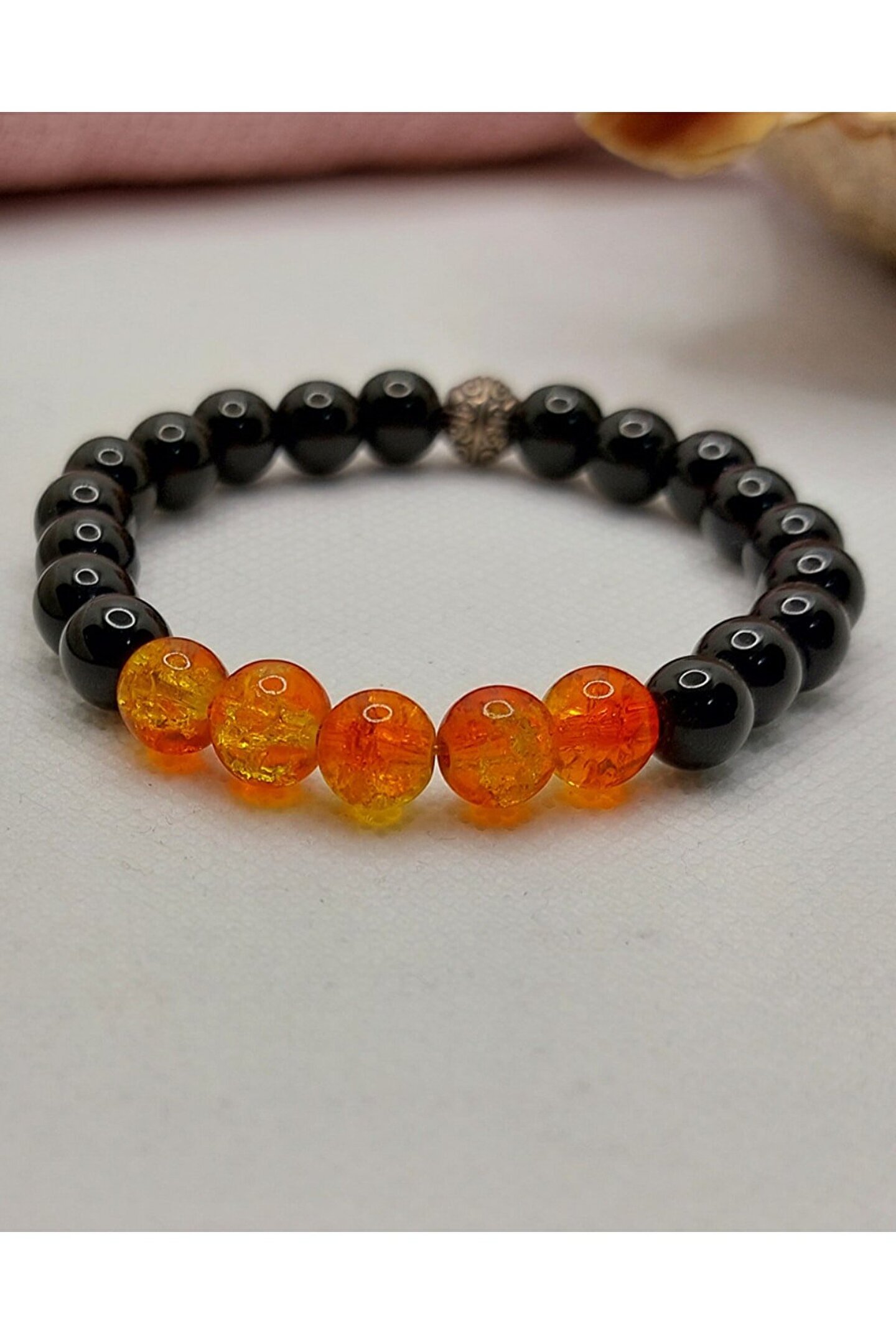 Oniks taşı özellikleri: İngilizcede “Onix” diye yazılan Oniks taşı, ayrılık taşı ve Şans taşı olarak bilinmekte olup yarı değerli bir taş türüdür. ; Oniks taşının özelliklerine bakıldığında gerçekte siyah ve gri renklerde olup açık renk bantları vardır. ; Opak görünümlüdür ve cam kadar parlaktır. ; Taşın sertlik derecesi 7'dir . ; Necef taşı özellikleri: Bu taş bir kaya kristalidir ve saydam özelliği sayesinde belli bir özelliği bulunmaz. ; Cam benzeri bir parlaklığı vardır. ; Oluşurken içerdiği mineraller ve su nedeniyle kişiye huzur ve ferahlık getirdiği bilinir. ; Aynı zamanda necef yaşı Osmanlı zamanında tesbih yapımında çok sık kullanılan bir taştı. ; Ürünlerimiz, gerçek doğal taşlardan özenle hazırlanmaktadır.;
