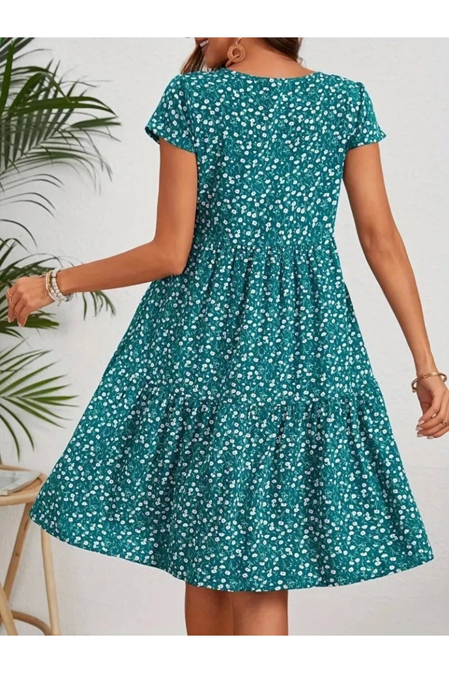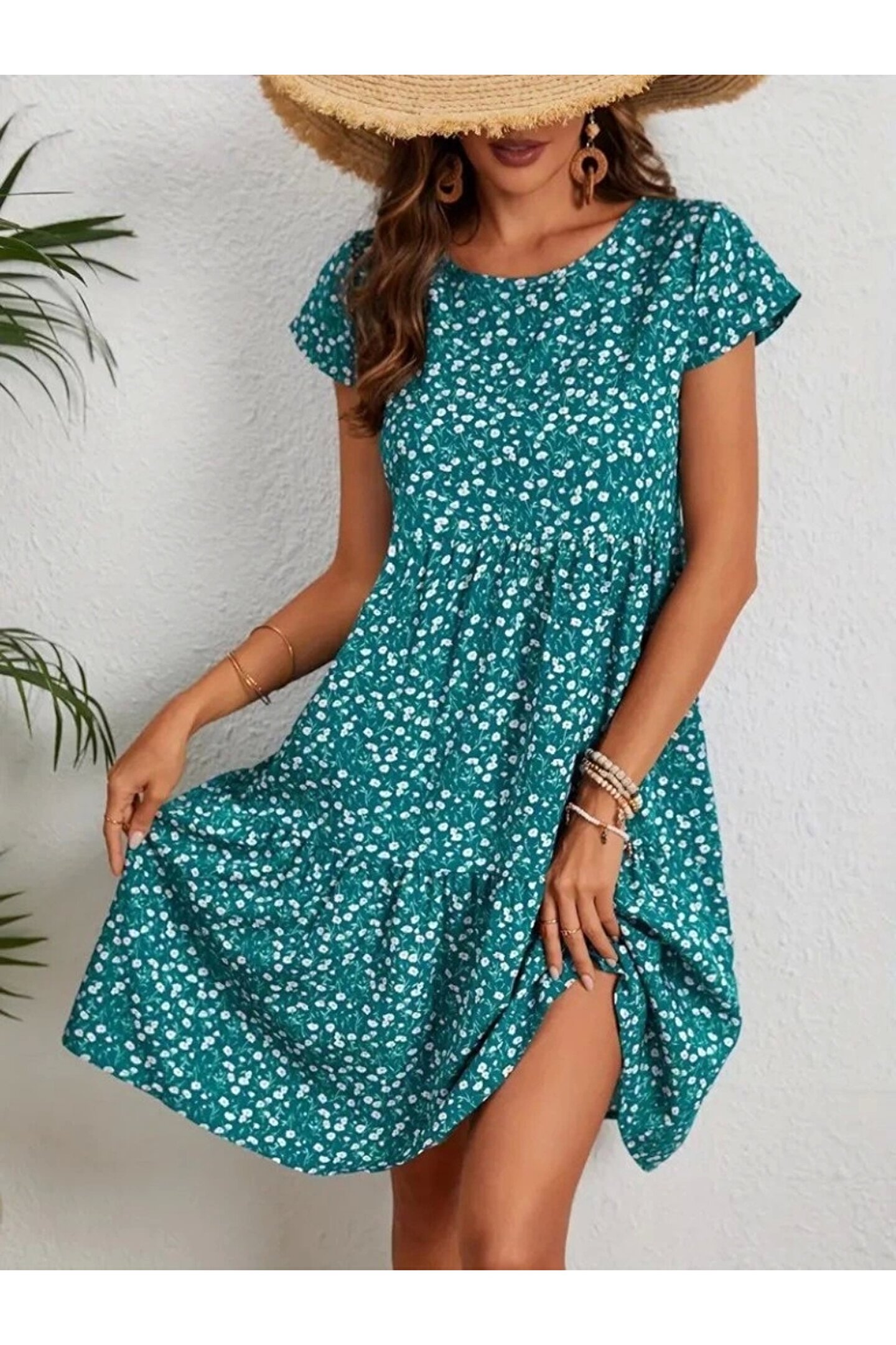 Kadın Kısa Kollu Bisiklet Yaka çiçek Desenli Süprem Elbise