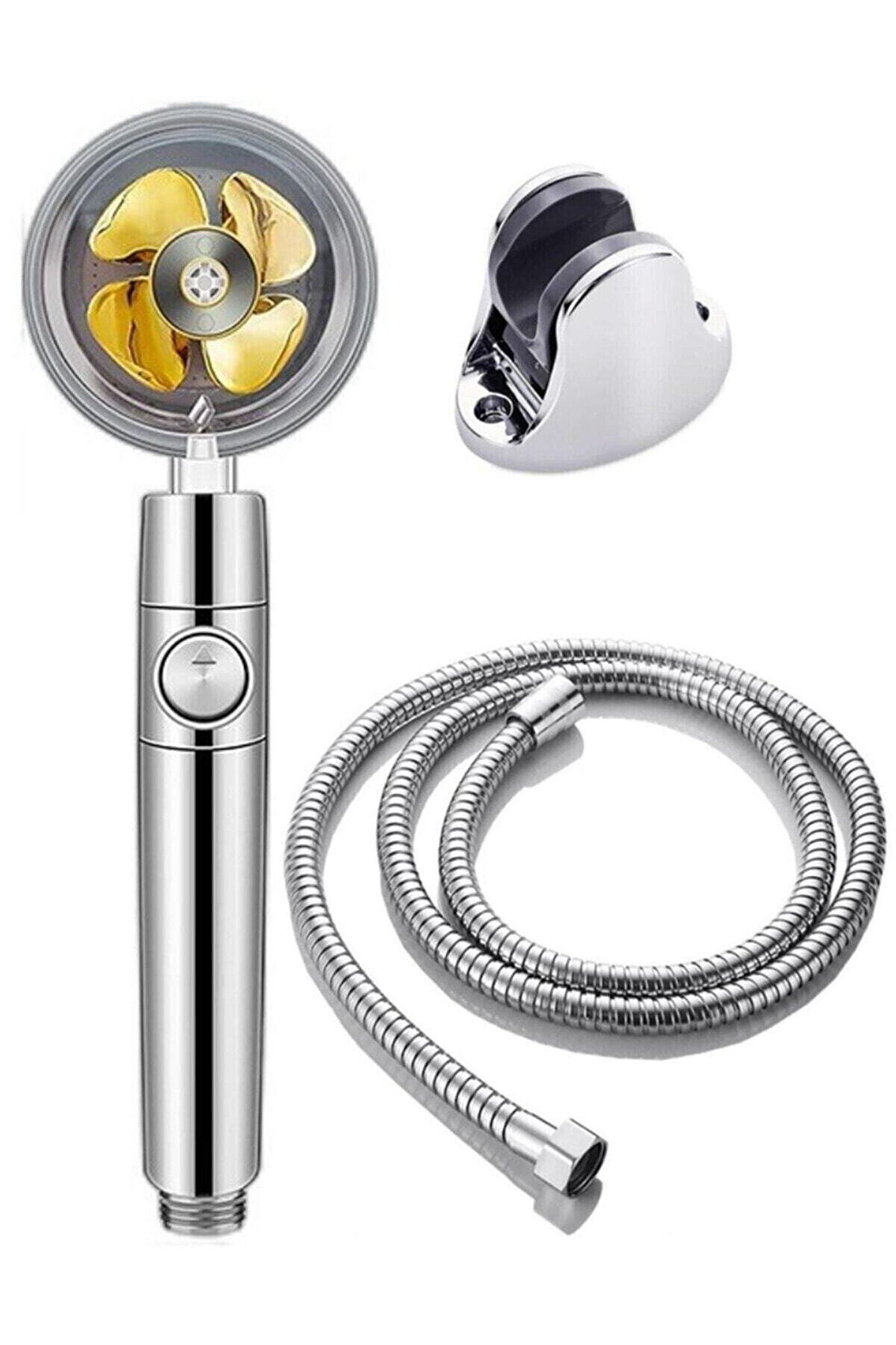 Su tasarrufu sağlayan pervaneli tasarımıyla, su tüketimini azaltarak hem çevre dostu hem de ekonomik bir kullanım sunar; Desenli su tazyikli torbo duş başlığı, banyo deneyiminizi şık ve modern bir görünüme kavuşturur; Kolay montaj imkanı sunan duş hortumu mafsal seti, duş sisteminizi hızlı ve pratik bir şekilde tamamlamanızı sağlar; Duş seti olarak tasarlanmış bu ürün, banyonuzda ihtiyacınız olan tüm parçaları tek bir pakette sunarak kolaylık sağlar;