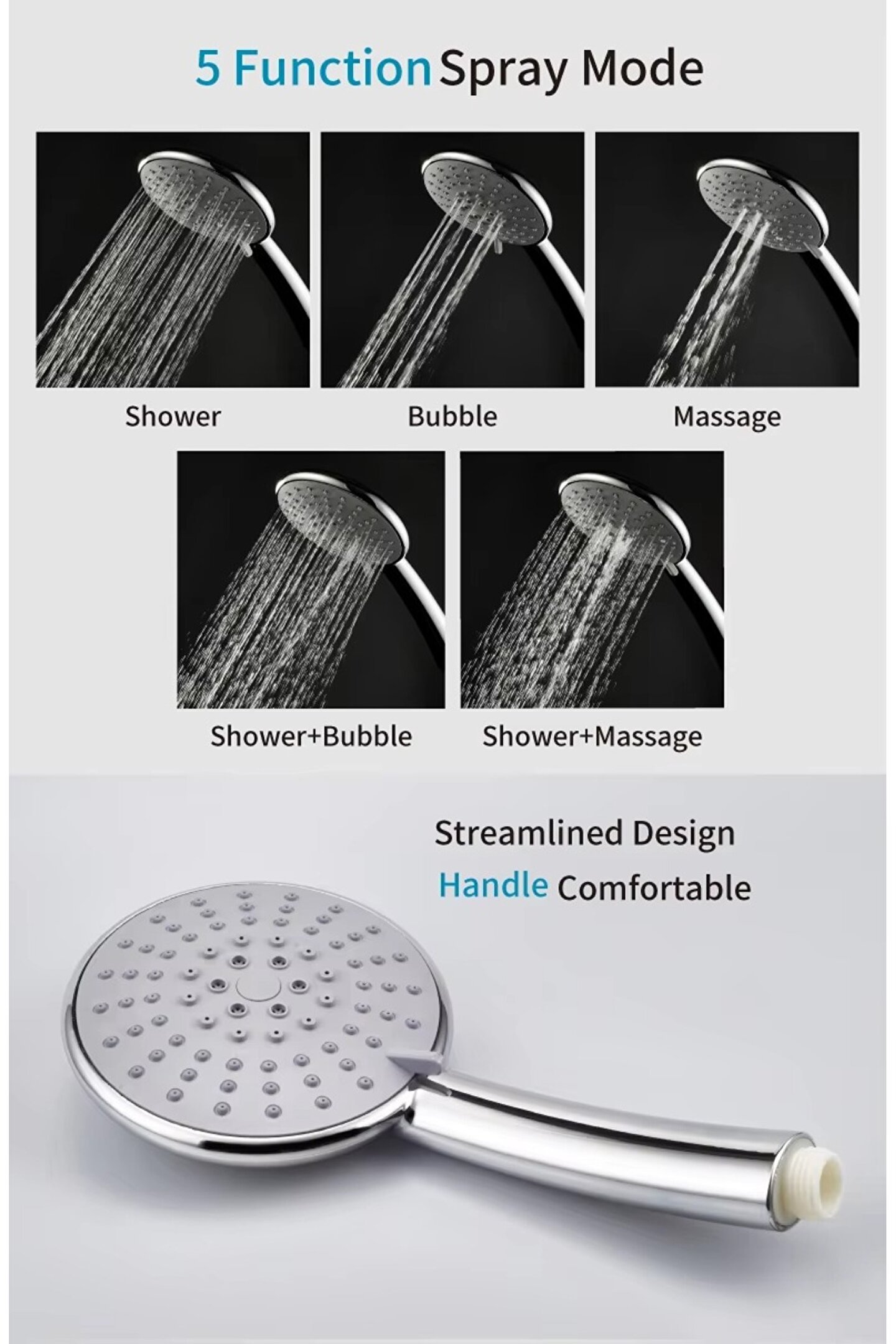 - Dayanıklı plastik malzeme kullanılarak üretilmiş, uzun ömürlü kullanım sunan duş başlığı, - 5 farklı fonksiyonu ile banyo deneyiminizi kişiselleştirin; su akışını istediğiniz gibi ayarlayın.; ; - Standart Mafsal tasarımı sayesinde duş başlığını kolayca hareket ettirerek rahat bir kullanım sağlar.; ; 2 adet duvel ve vida ile kolayca montajını yapabilirsiniz.; ; -Çelik iç örgüye sahip 150 cm uzunluğundaki hortumu ile rahat bir duş deneyimi yaşatır.; ; hortum girişi dünya standartı 1/2 yarım parmak duş banyo bataryalarına uyumludur.; ; eski tip büyük girişli çevirmeli banyo bataryaları için ekstradan adaptör kullanmanız gerekmektedir.; ; - Krom kaplama Materyali nedeniyle kolay temizlenebilir ve bakımı pratiktir, sabunlu suyla kolayca temizlenebilir.; ; -Uzun ömürlü kullanım için.; ; Asitli bileşenlerden uzak tutulması gerekmektedir.; ; Paket içeriği : 1 Adet Duş Başlığı 1 Adet 150cm Duş hortumu 1 Adet Mafsal 1 kutu içerisinde güvenli ve sağlam şekilde gönderilmektedir.; ; ürünlerimiz test aşamasından geçtikten sonra paketlenmektedir.; ; Herhangi bir sorunla karşılaşırsanız bize mağazaya sor kısmından ulaşabilirsiniz.; ; Çözemeyeceğimiz hiç bir sorun olmadığını düşünüyoruz.; ; Müşteri memnuniyeti bizim için en önceliktir.; ; Diğer ürünlerimiz için mağazamızı inceleyip bize destek olmak için ve yeni ürünlerden haberdar olabilmek, indirimlerden faydalanmak için mağazamızı takip edebilirsiniz.; ;