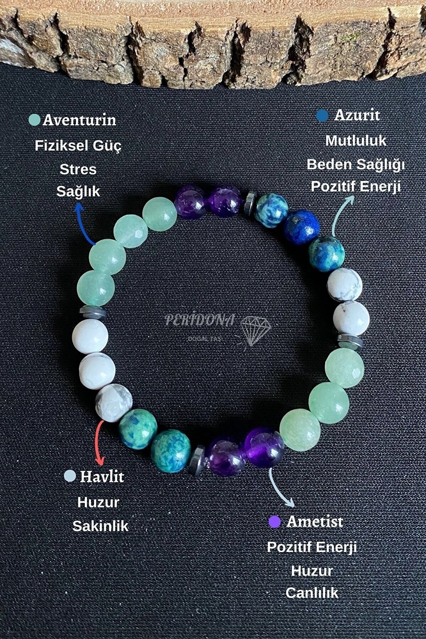 Doğal taş kullanımı sayesinde her bileklik benzersiz ve özgün bir görünüm sunar; Gençlerin enerjisine ve stiline uyum sağlayacak tasarımıyla dikkat çeker; Sağlıklı ve doğal materyallerden üretilmiş olup, cildinizle dost bir dokunuş sağlar;