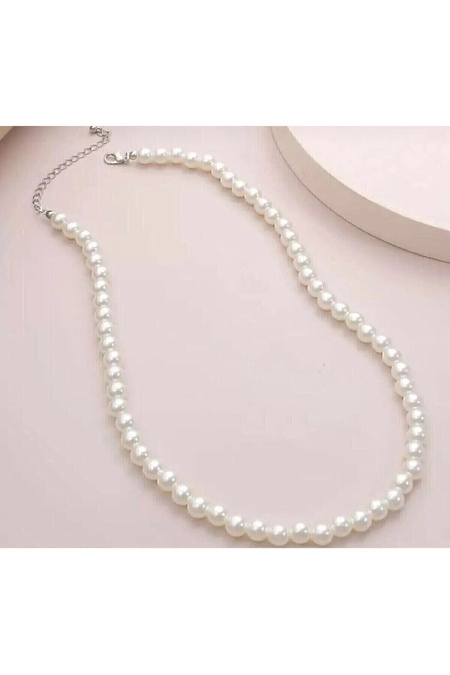 - Zarif tasarımı ile her türlü kıyafeti tamamlayan 45 cm uzunluğundaki inci kolye, şıklığınızı ön plana çıkarır.; - Nemli bir bezle kolayca temizlenebilir yapısı sayesinde bakımı pratiktir; böylece her zaman parlak ve yeni görünümünü koruyabilirsiniz.; - Kadınlar için özel olarak tasarlanmış bu kolye, zarafetiyle göz kamaştırır ve her yaş grubundan kadının gardırobunun vazgeçilmezi haline gelir.; - Üretiminde kullanılan cam materyali ile hem dayanıklılığı hem de estetik görünümü bir arada sunar; böylece uzun süreli kullanım için idealdir.; - Türkiye'de üretilen bu ürün, yerel kaynakların kullanımını destekleyerek sürdürülebilir moda anlayışına katkıda bulunur.