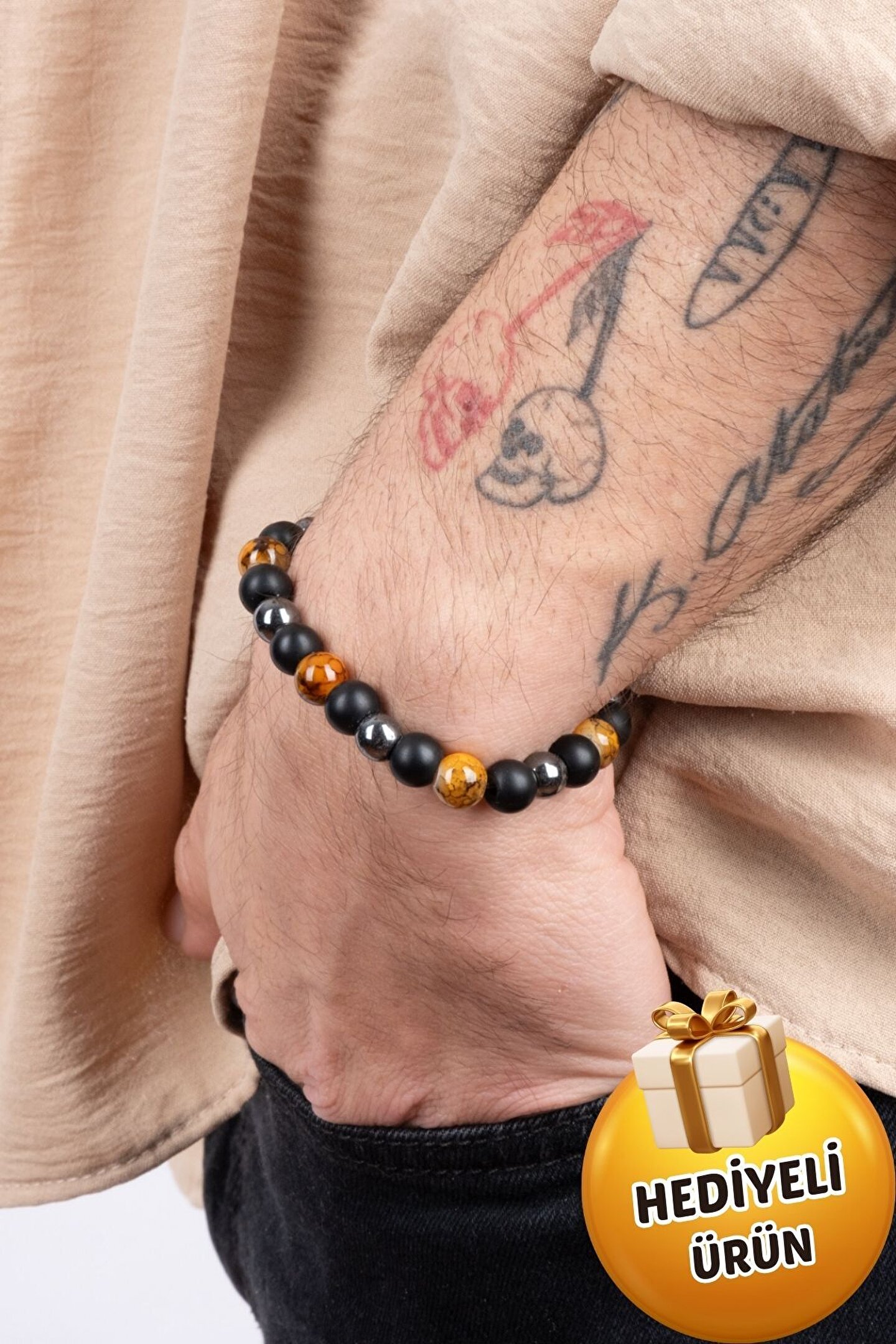 - Doğal taş kullanımı sayesinde hem şıklığı hem de enerjisi bileğinizde taşıyın.; - Kaplangözü, Oniks ve Hemitite sahip bu bileklikle enerjinizi dengeleyin ve koruyun.; - Unisex tasarımı ile herkes tarafından rahatlıkla kullanılabilir; cinsiyet ayrımı yapmaz.; - Yetişkin yaş grubuna hitap eden bu bileklik, günlük kullanım için idealdir.; - Doğal taşların estetiğiyle bileğinizde zarif bir görünüm sağlayın.