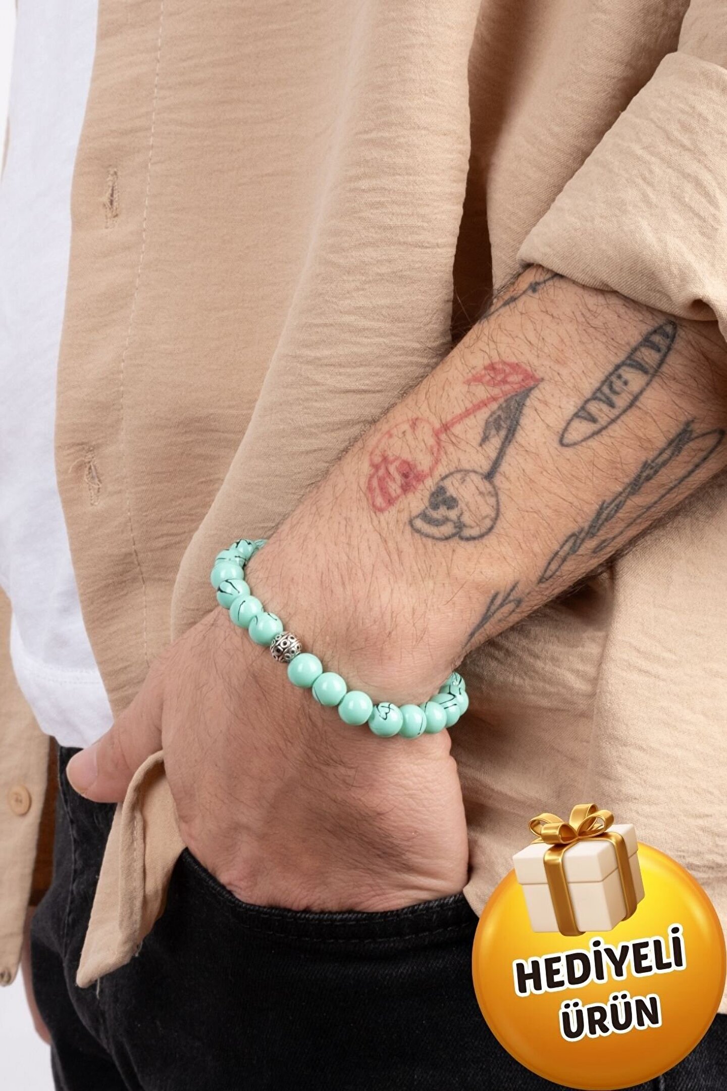 Piercing Market Steel & Silver Unisex Turkuaz Cam Hediyelik Bileklik