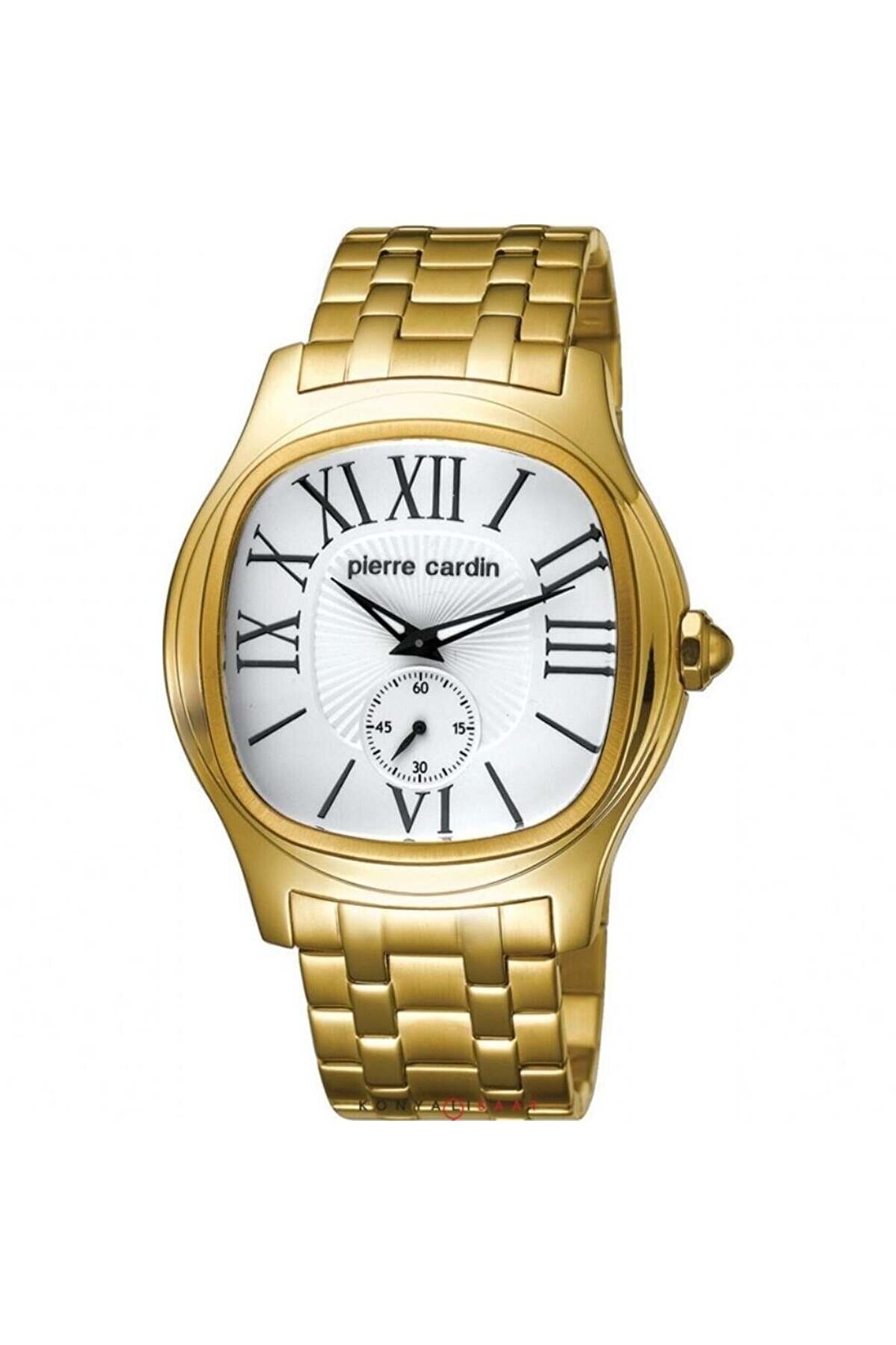 Marka: Pierre Cardin Cinsiyet : Erkek Makine Tipi: Quartz Kordon Tipi: Çelik Kordon Rengi: Sarı Kasa Tipi: Çelik Kasa Rengi: Sarı Kasa Şekli : Oval Kadran Şekli: Oval Kadran Rengi: Beyaz Cam Tipi Mineral Kasa Çapı 44mm Su Geçirmezlik 30 Takvim: Var Alarm Taş Yok;