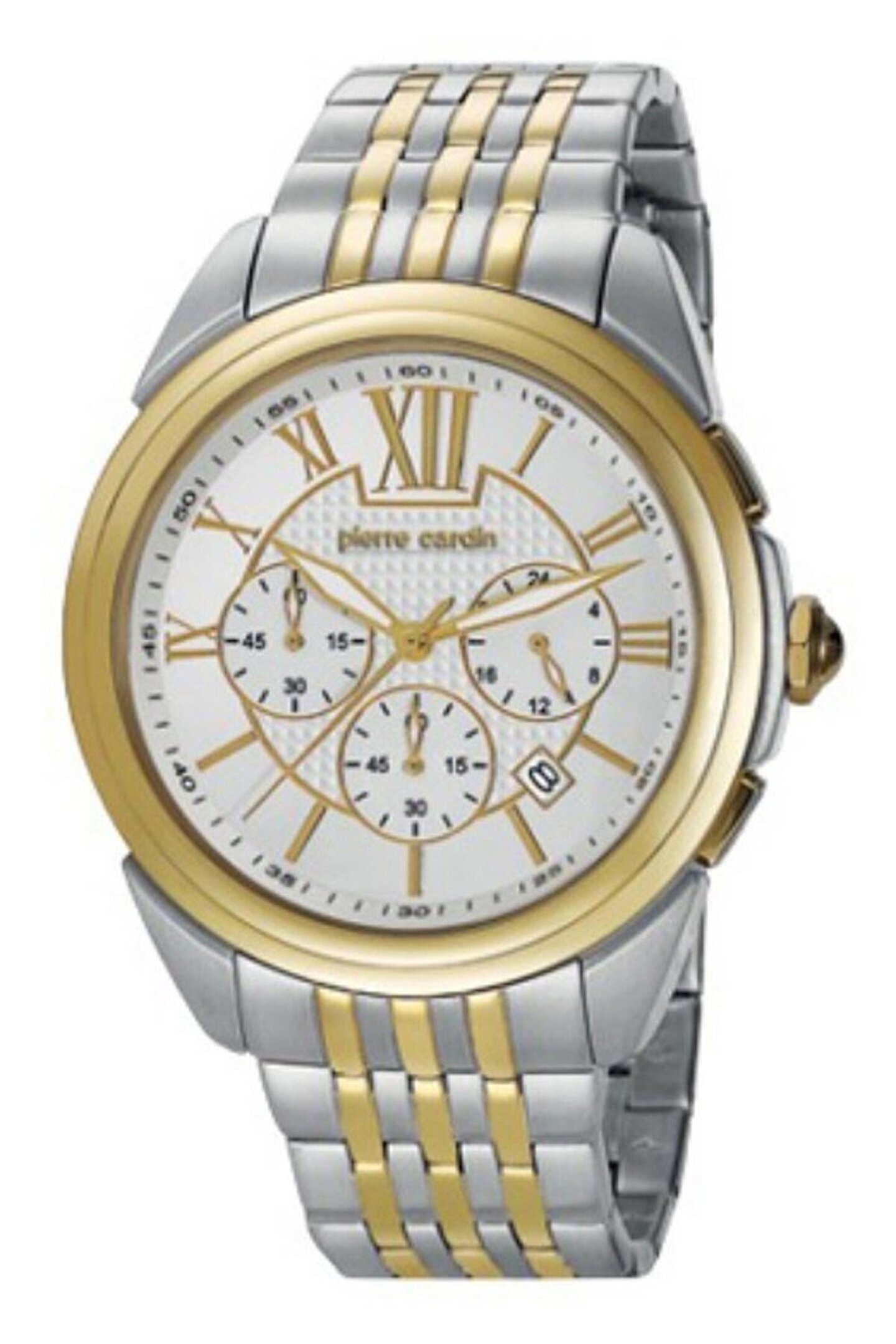Marka:Pierre Cardin Cinsiyet : Erkek Kadran Şekli: Yuvarlak Kadran Rengi : Beyaz Kordon Cinsi : Çelik Kordon Rengi : Sarı Beyaz Kasa Çapı : 49 mm Kasa Cinsi : Çelik Kasa Şekli : Yuvarlak Cam Cinsi : Mineral Cam Su Geçirmezlik : 10 (atm) Makine Cinsi : Quartz (Pilli) Seri Adı : 0 Ağırlık : 140 gr Özellikler : Takvim Takvim Kronograf 12/24 Saat Formatı;