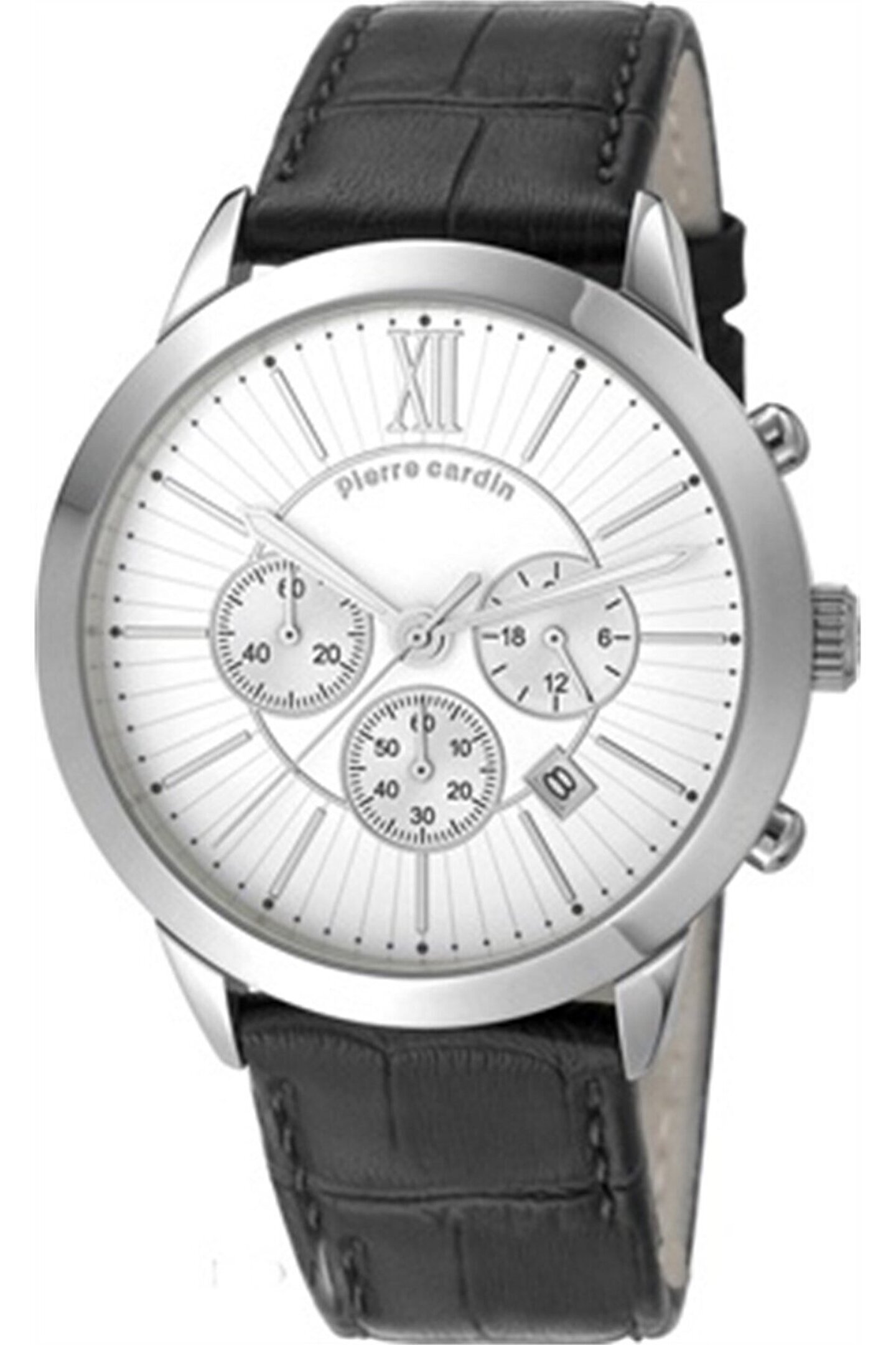 Marka: Pierre Cardin Cinsiyet : Erkek Makine Tipi: Quartz Kordon Tipi: Deri Kordon Rengi: Siyah Kasa Tipi: Çelik Kasa Rengi: Metal Kasa Şekli Yuvarlak Kadran Şekli: Yuvarlak Kadran Rengi: Beyaz Cam Tipi Mineral Kasa Çapı 45mm Su Geçirmezlik 30 Takvim: Var Alarm: Yok Taş Yok