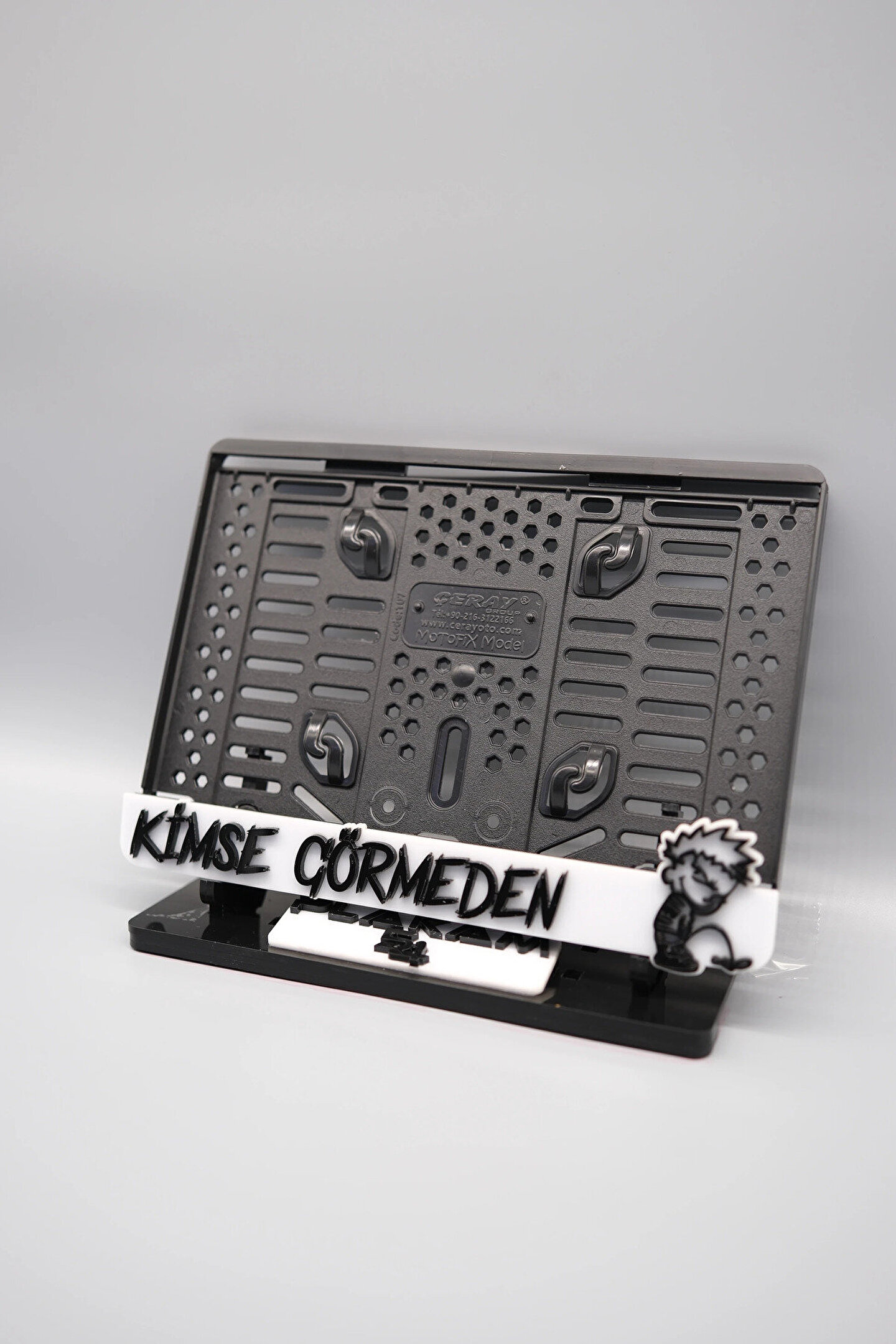 Plakam54 KİMSE GÖRMEDEN 3D KABARTMALI BEYAZ PLEKSİ MOTOR PLAKALIĞI