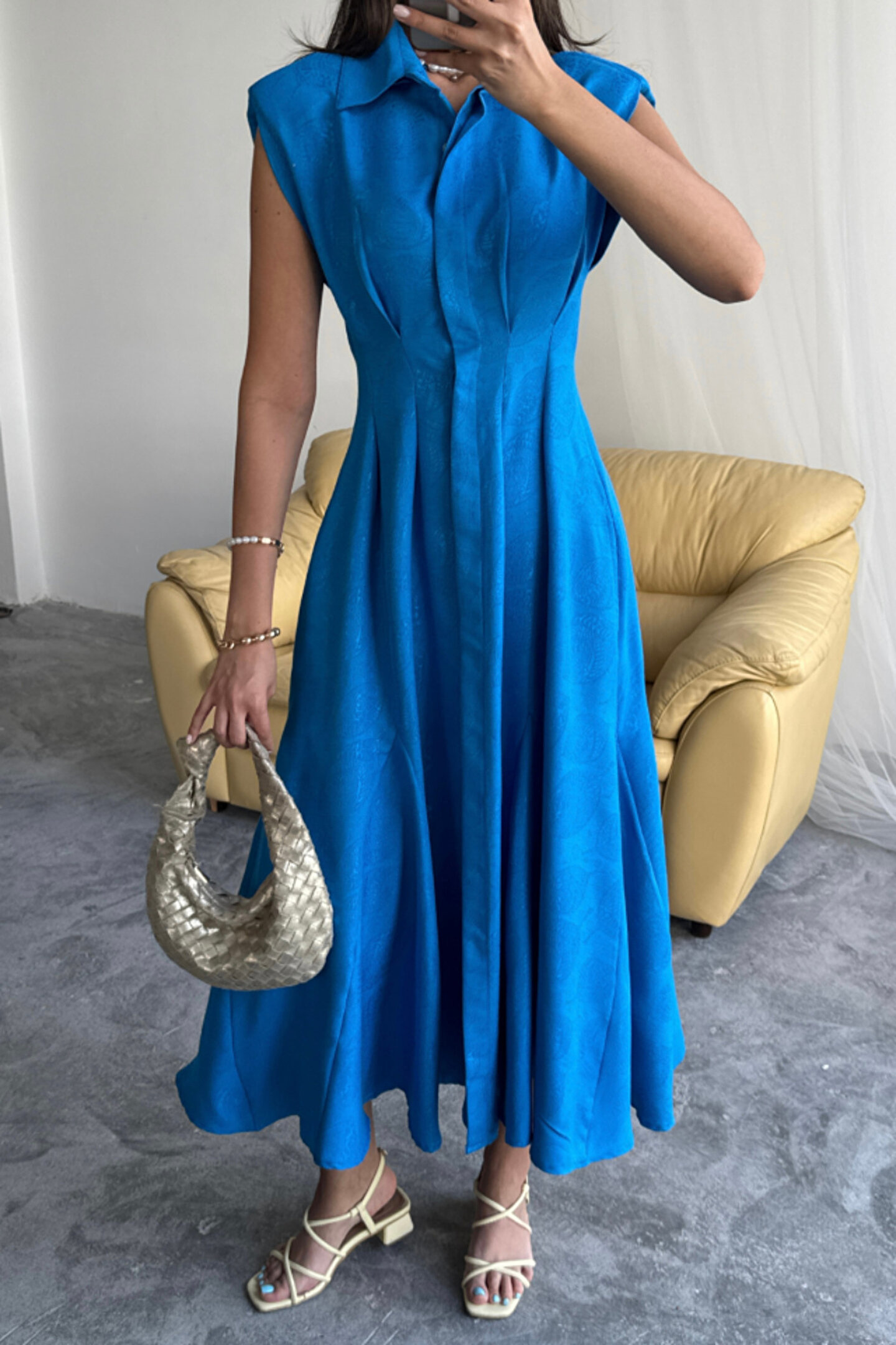 JAKARLI KETEN ELBİSE ÖNDEN YIRTMAÇLI CEPLİ - Saks