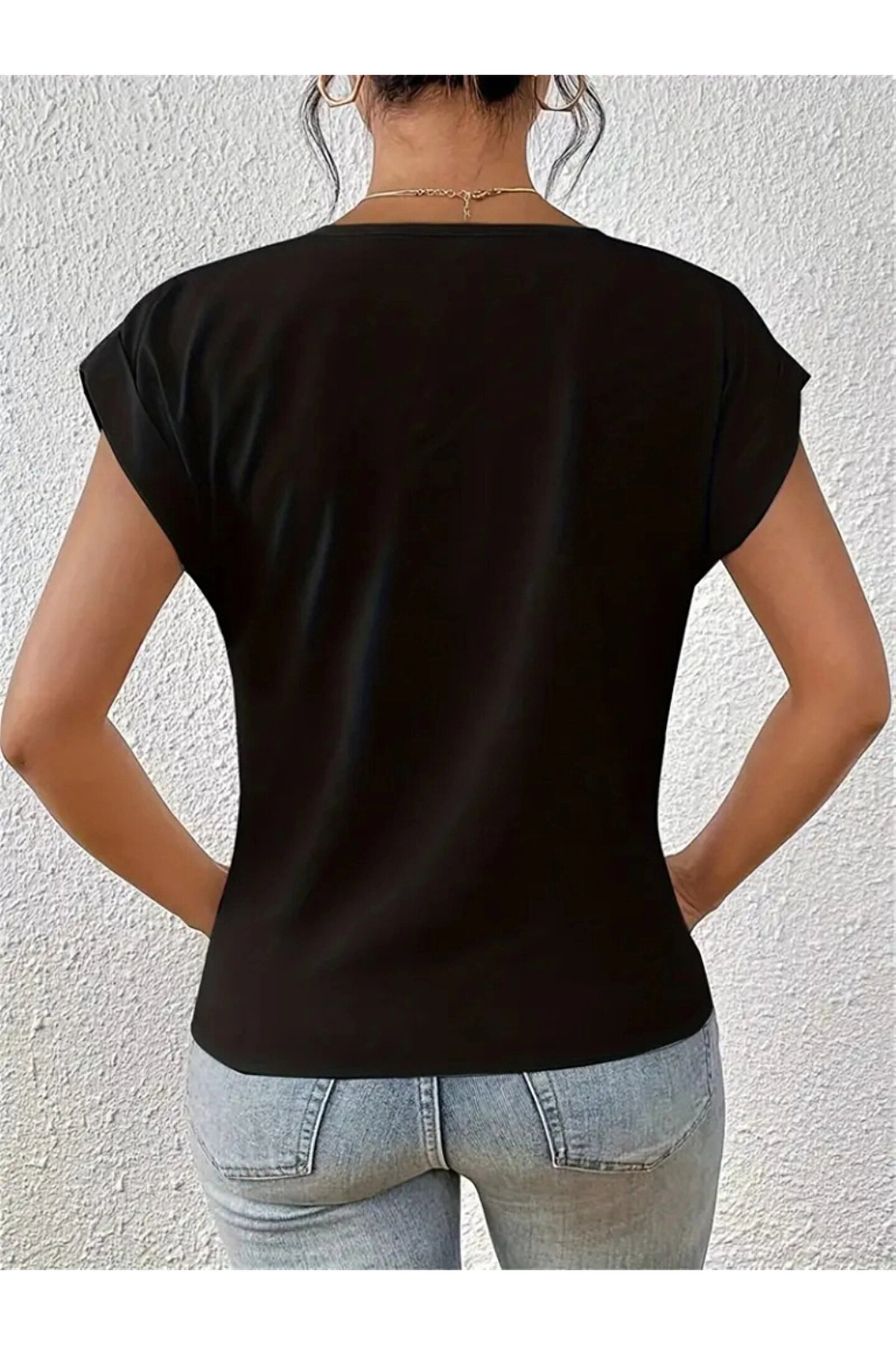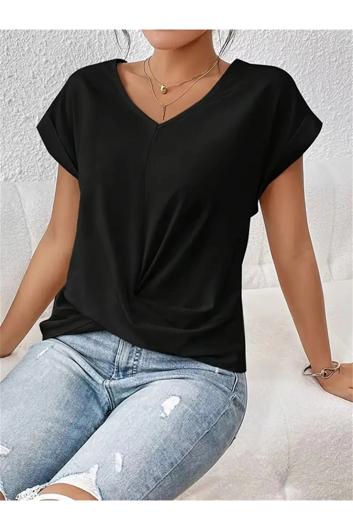 Kadın Kısa Kollu V Yakalı önden çapraz Geçmeli Detay Viskon Bluz