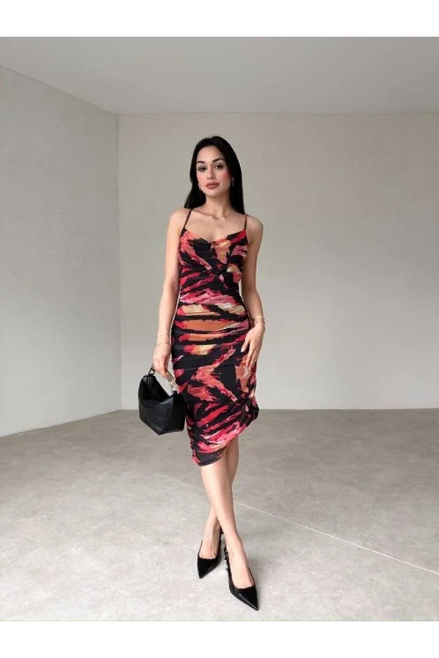 Gençlerin enerjisini yansıtan tasarımıyla, her yaş grubuna hitap eden askılı drapeli tül kumaş diz altı elbise, şıklığı ve rahatlığı bir arada sunar; Midi boyu ile hem günlük kullanımda hem de özel günlerde ideal bir tercih olan bu elbise, zarif siluetiyle dikkat çeker; Düz kesimi sayesinde sade ve modern bir görünüm sağlar; tül dokusu ise hafif ve havadar bir his verir; Astarlı yapısı ile konforlu bir kullanım sunarken, slim kalıbı vücut hatlarını nazikçe sararak feminen bir duruş kazandırır; Askılı kol tipi ve boyu ile yaz aylarında serinlik ve rahatlık sağlar; tüm gün süren etkinlikler için idealdir; Her yaş grubuna uygun tasarımıyla geniş bir kullanıcı kitlesine hitap eder; tüm yaş gruplarına yönelik olarak tasarlanmıştır;