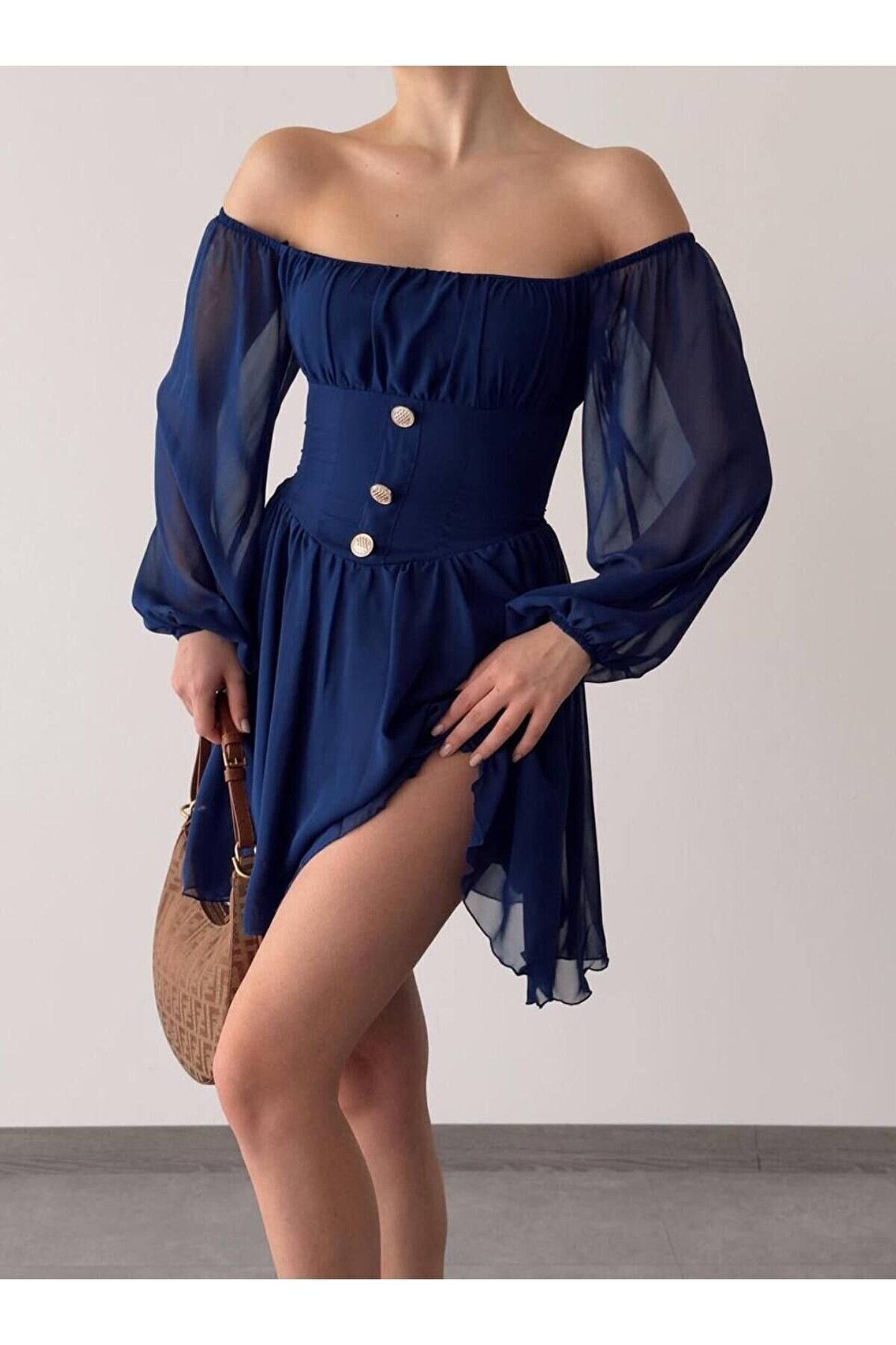 Bu şık mini şifon elbise, düğme detaylarıyla zarif bir görünüm sunar; Astarlı yapısı konforlu bir kullanım sağlar ve uzun kolları ile mevsim geçişlerine uyum sağlar; Slim kalıbı sayesinde vücut hatlarını nazikçe sararak feminen bir siluet oluşturur; Dantel detayları ile zenginleştirilmiş kumaşı, sofistike bir dokunuş katarken tüm yaş gruplarına hitap eden düz tasarımıyla her ortamda rahatlıkla tercih edilebilir; Basic koleksiyonunun parçası olan bu elbise, günlük kullanım için idealdir; Carmen yaka tasarımı ise boynunuzu zarifçe ortaya çıkarır ve düz deseniyle sade şıklığı ön plana çıkartır; ;;