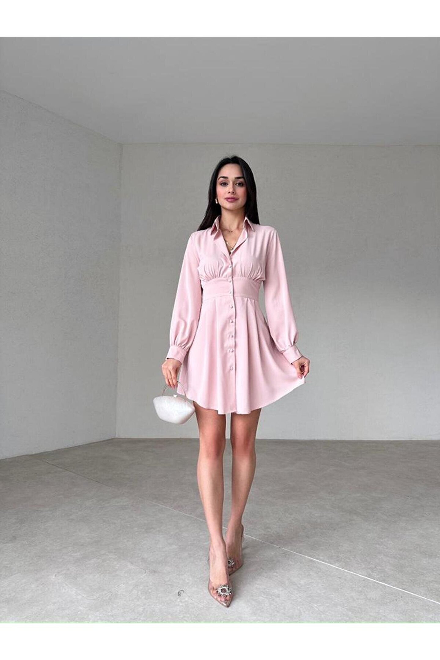 - Zarif ve şık tasarımıyla dikkat çeken mini elbise, her türlü özel davet ve etkinlikte göz alıcı bir görünüm sunar; - Klasik gömlek formlu kesimi ile modern ve zamansız bir stil yaratırken, slim kalıbı vücut hatlarını zarifçe sararak feminen bir siluet oluşturur; - Dokuma kumaş yapısı sayesinde dayanıklılık ve konforu bir arada sunar; uzun süreli kullanımlarda bile formunu korur; - Her yaş grubuna hitap eden tasarımıyla geniş bir kullanıcı yelpazesine sahiptir; gençlerden yetişkinlere kadar herkes için idealdir; - Şık ve gece ortamları için ideal olan bu elbise, özel günlerdeki ışıltınızı tamamlamanız için mükemmel bir seçimdir;