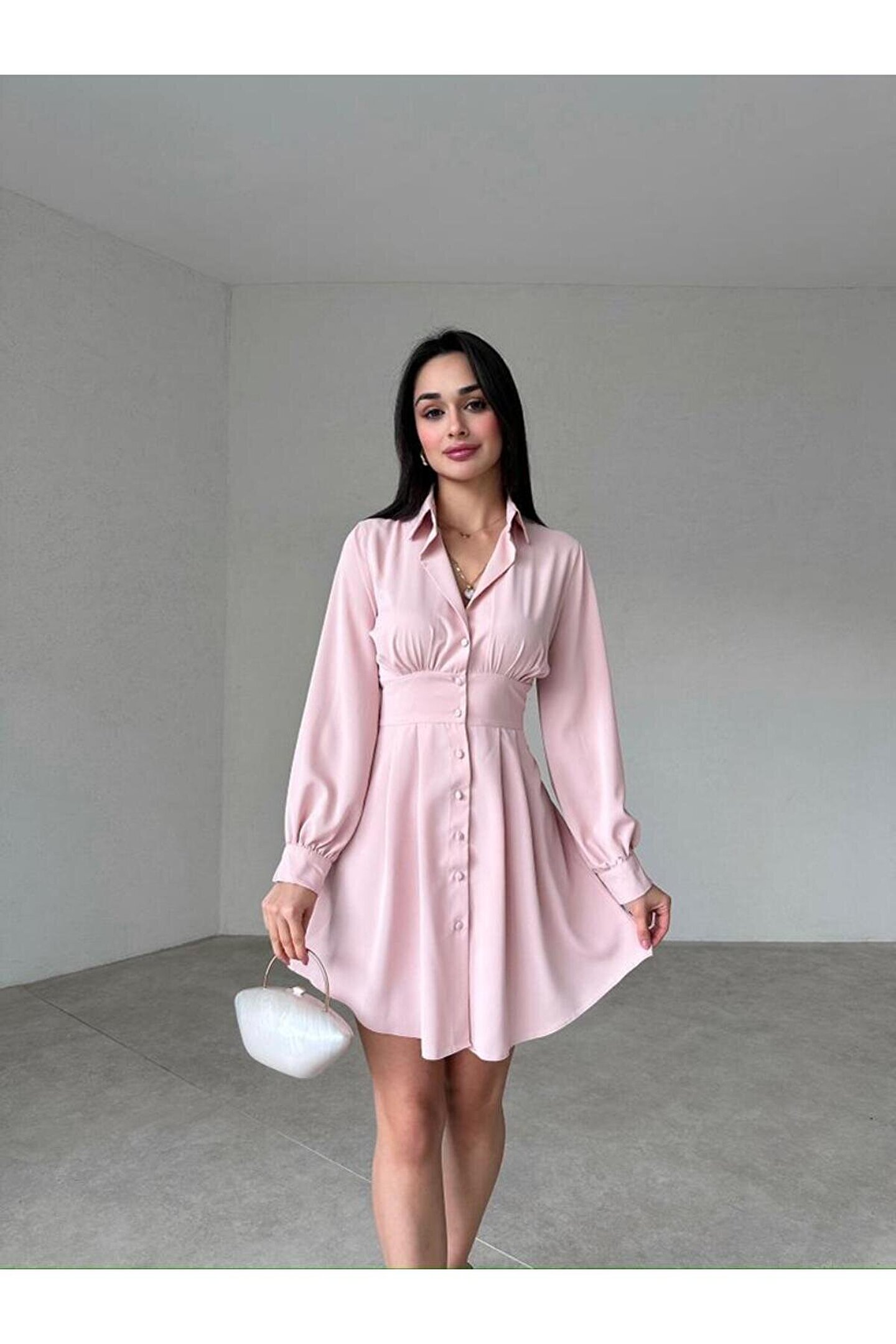 popibutik Gömlek Formlu Mini Elbise