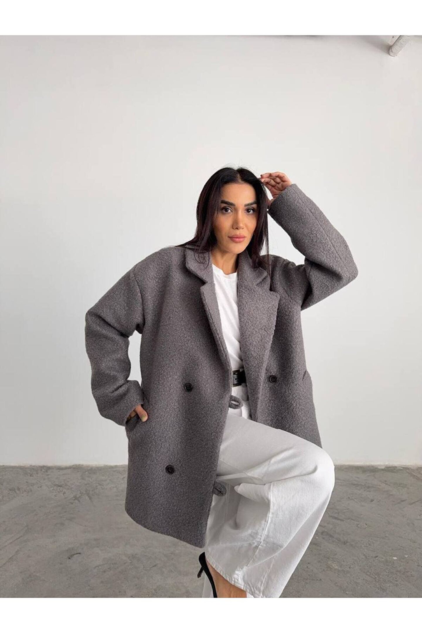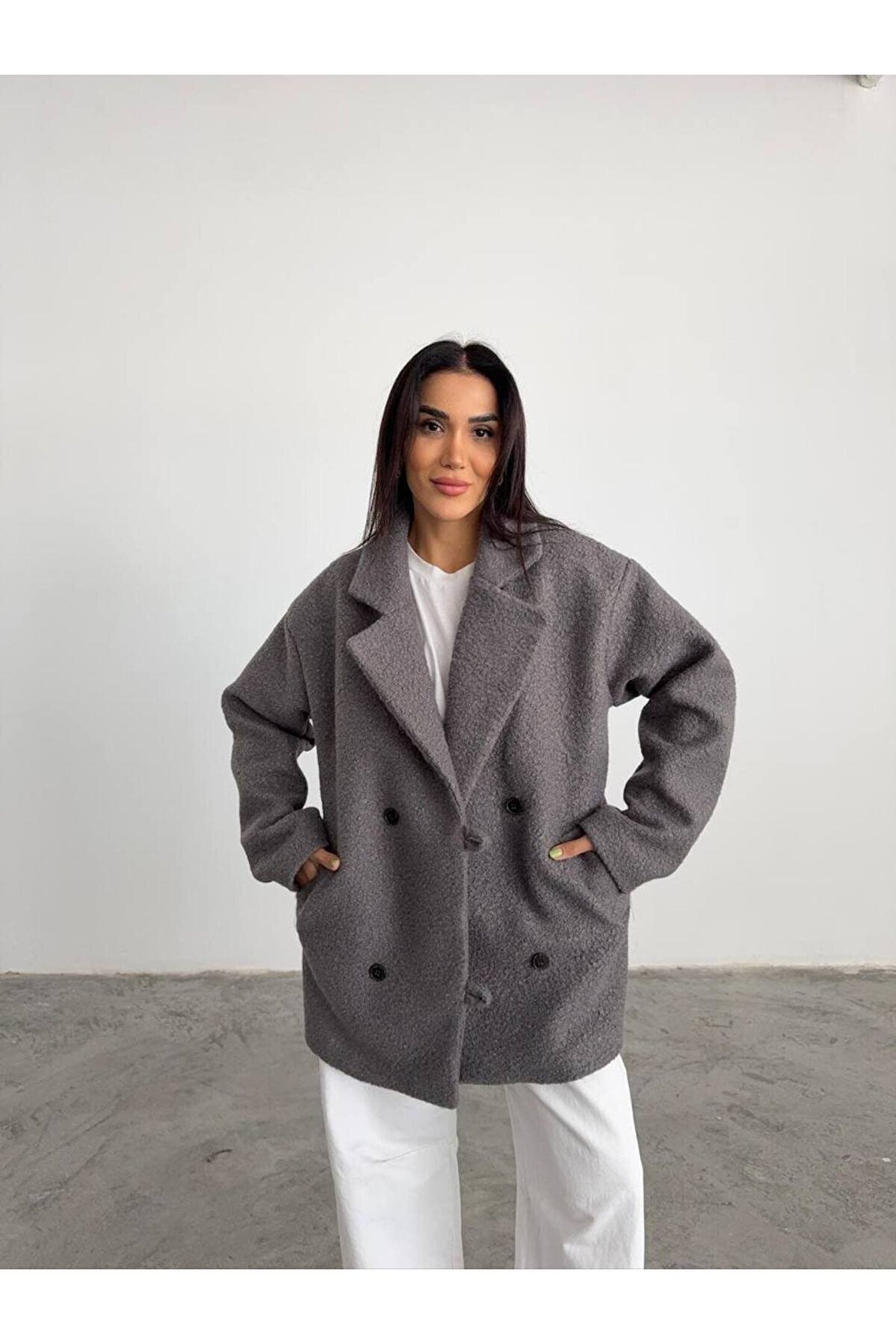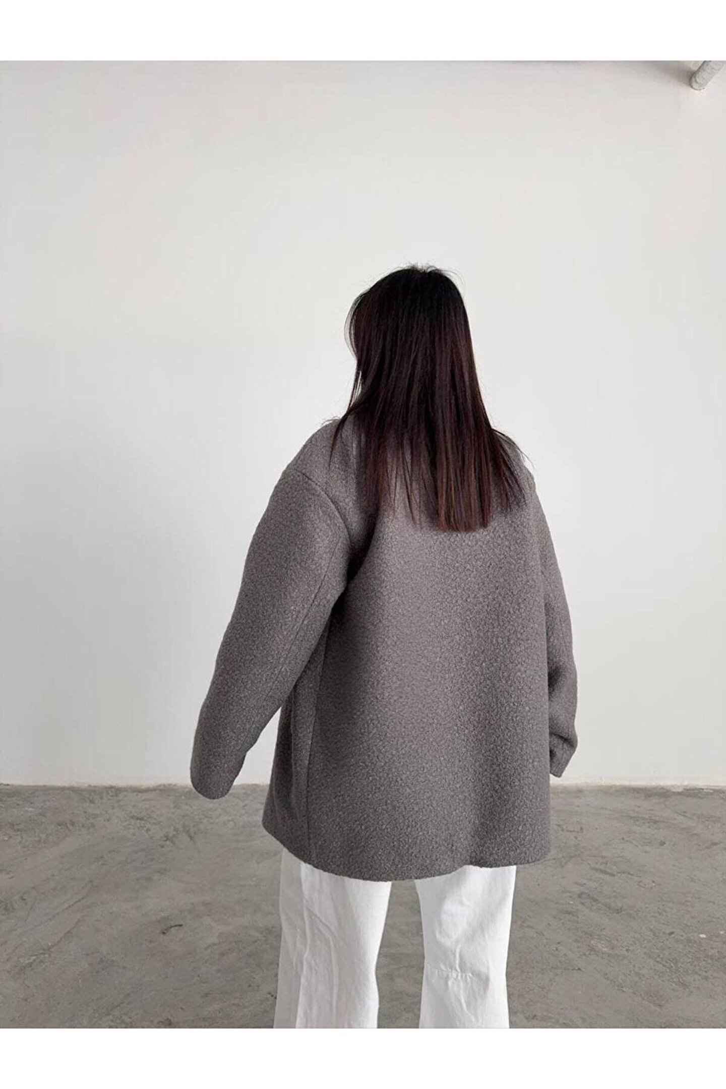 popibutik Kadın Buklet Kumaş Kısa Kaban