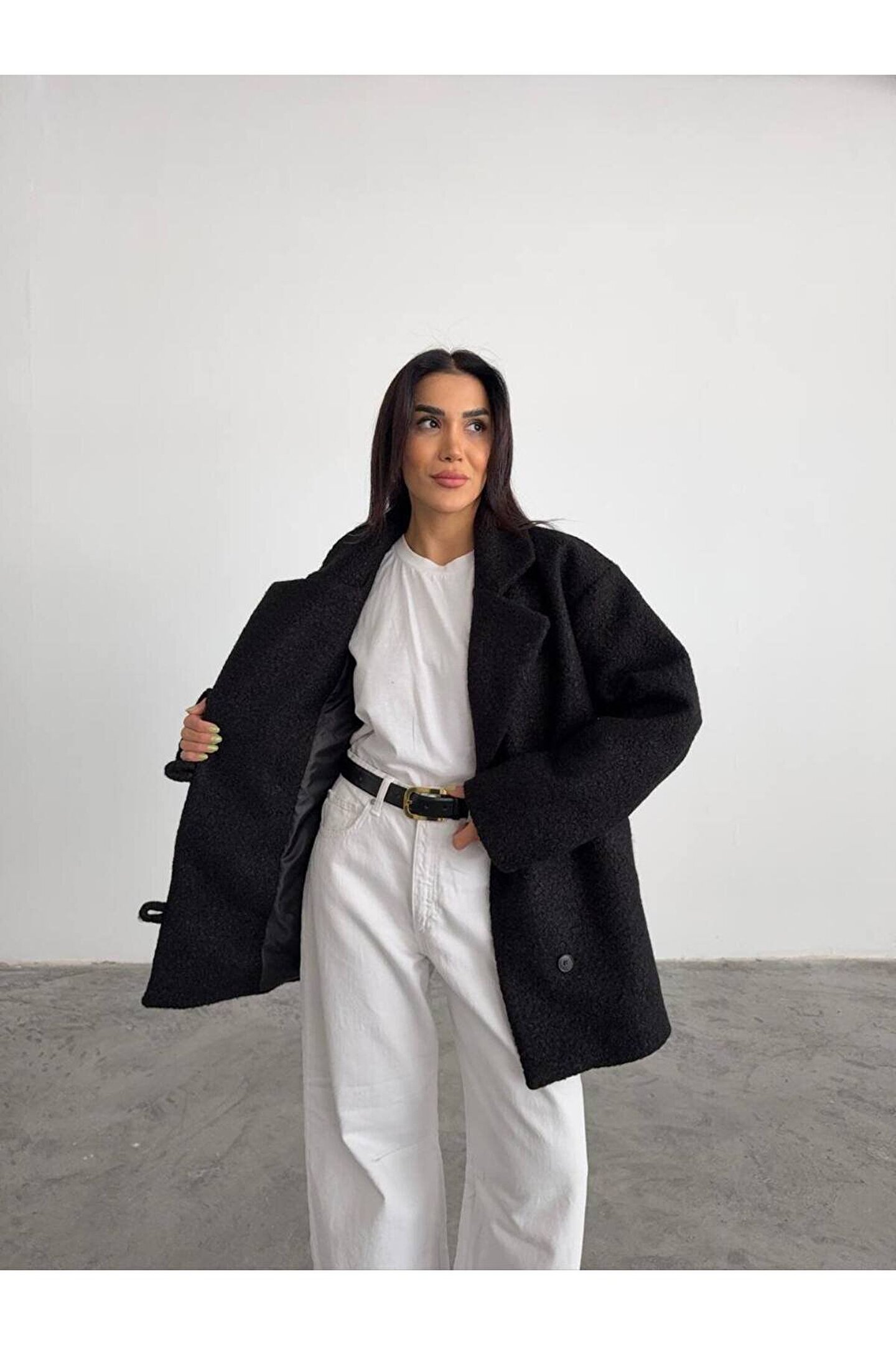 popibutik Kadın Buklet Kumaş Kısa Kaban